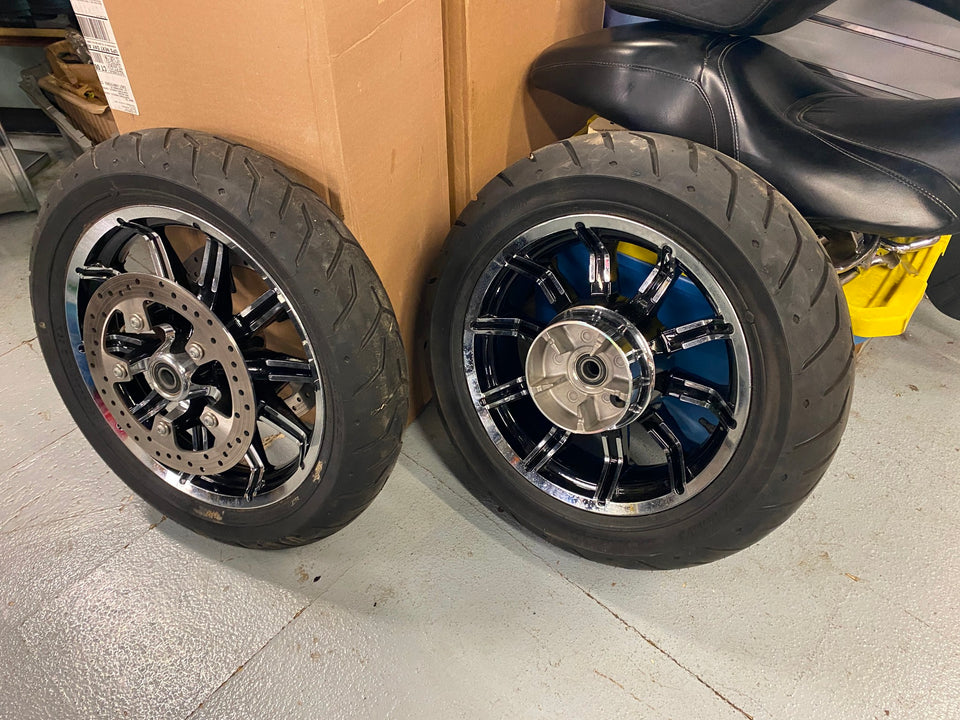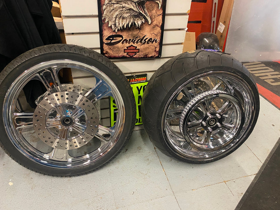 IRONHORSE WHEEL SET BILLET CHROME 280 TIRE 21" PULLEY ROTOR FRONT REAR