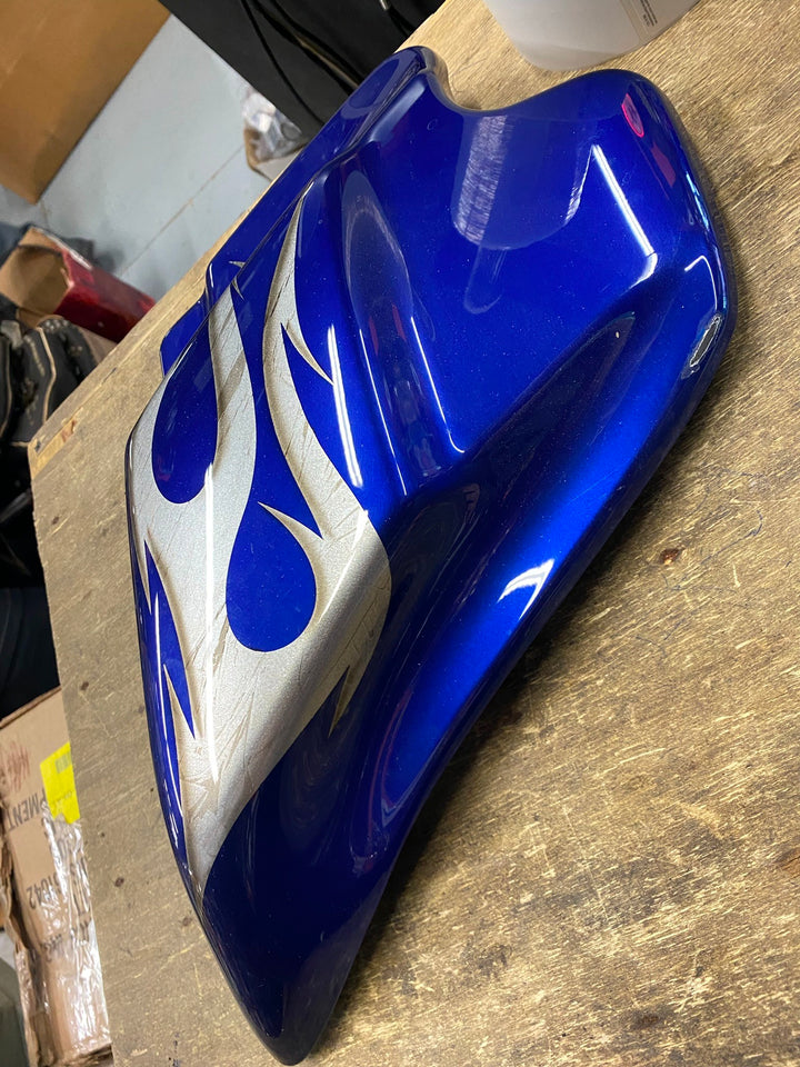 LEFT FLAME BLUE SIDE COVER CVO CUSTOM HARLEY TOURING FLH BAGGER ROAD KING GLIDE