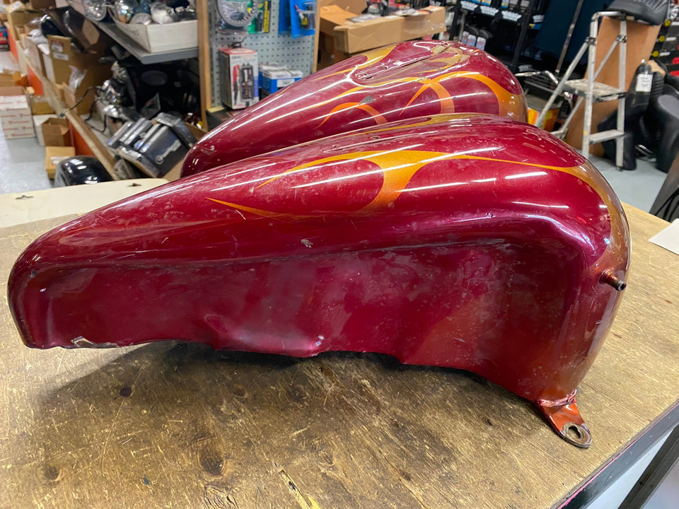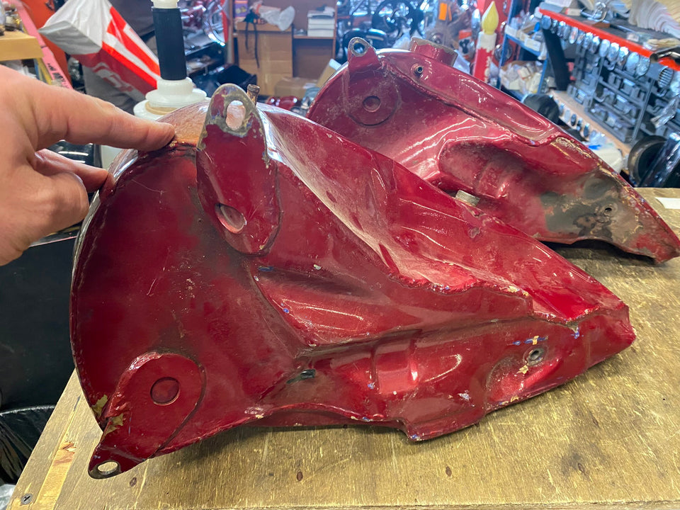 1967-1972 FACTORY SHOVELHEAD GAS TANKS FLH EMBLEM MOUNT OEM HARLEY CLEAN INSIDE