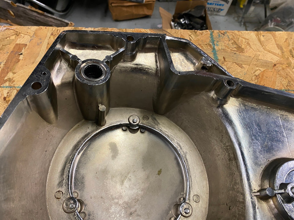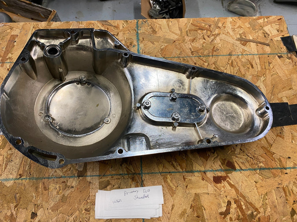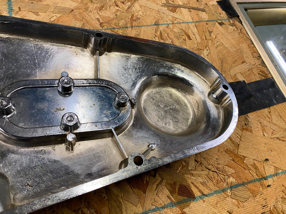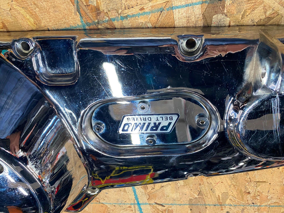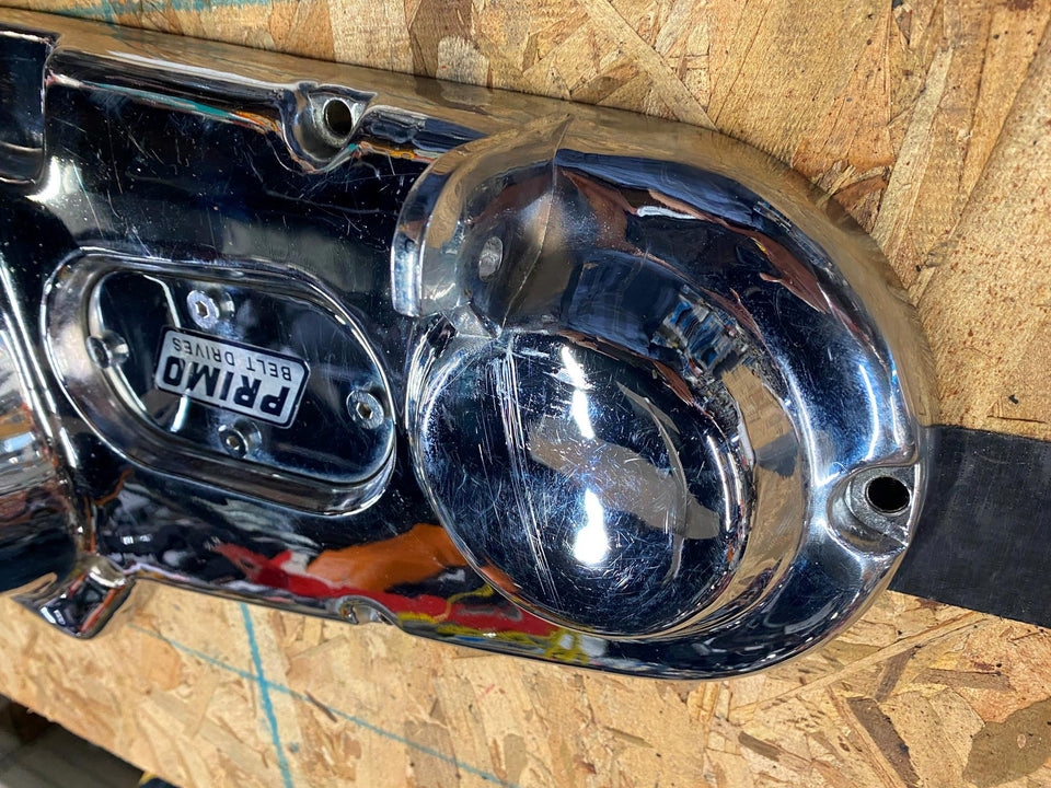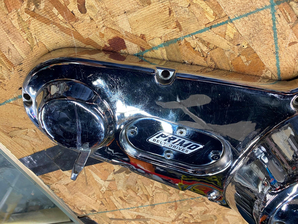 OPEN BELT DRIVE PRIMARY COVER MOON BRASS HARLEY SHOVELHEAD 1970-1981 CHROME