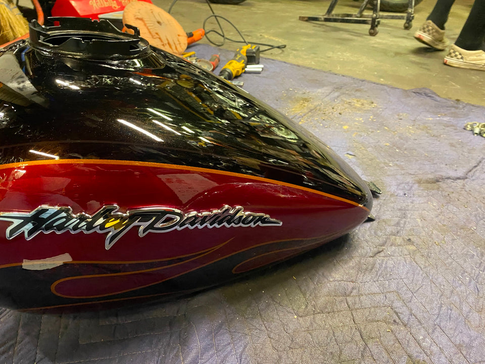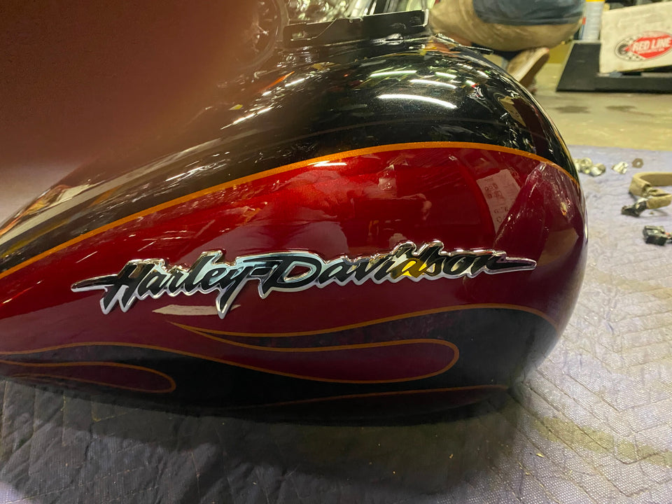 2011 Gas Tank Harley Ultra Classic Glide CVO Black Ember Rio Red Flame FLHTCUSE6 nice shape, few smalls have other body parts from this bike listed also.