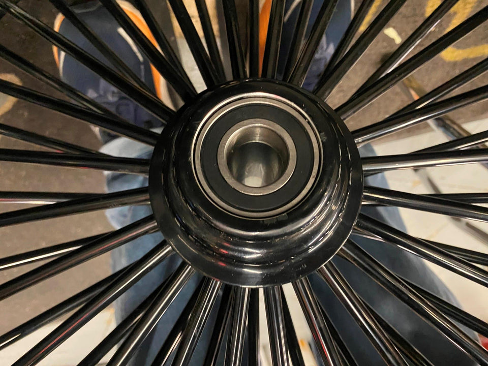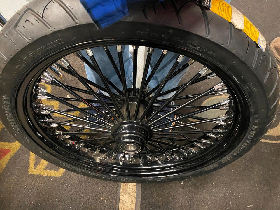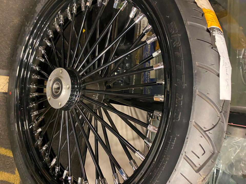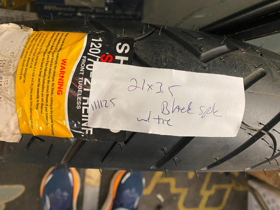 3.5x21 Fat Spoke Wheel Black 120 Tire Mounted Harley Heritage Softail FXST Chopper brand new mounted assy for a customer ready to bolt on!