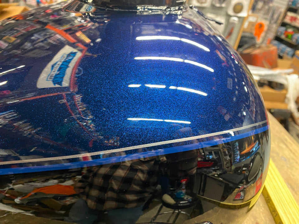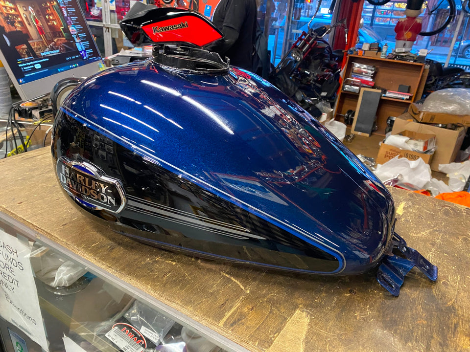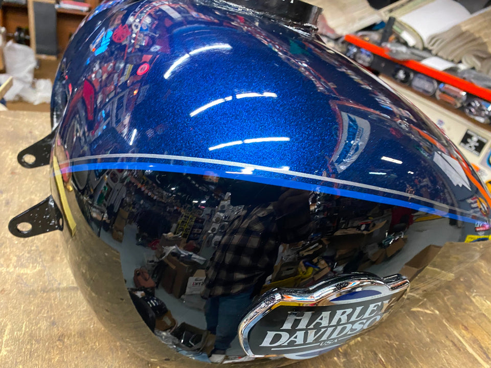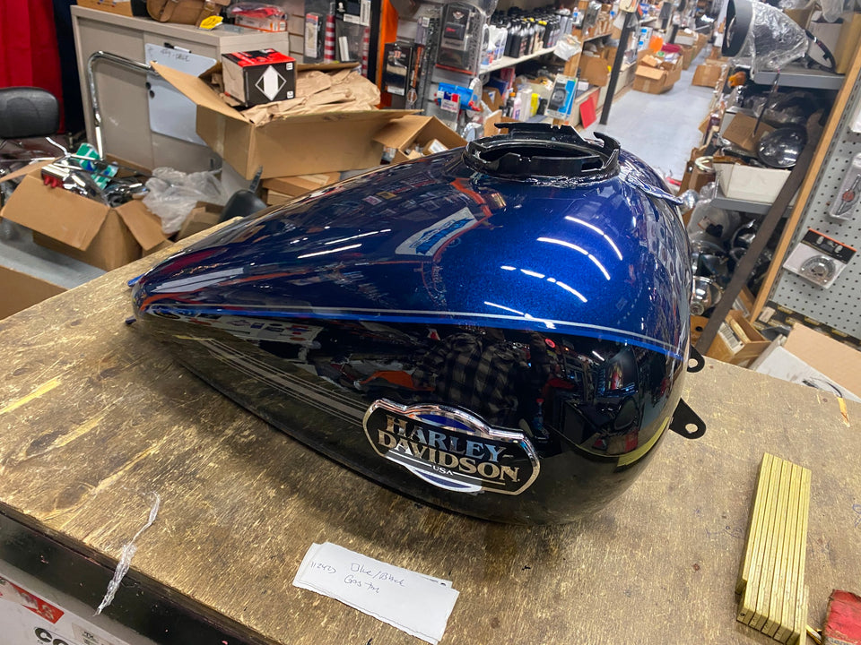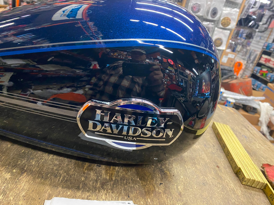 Blue Black Emblems Gas Tank Harley Touring FLH Ultra classic Glide Street. Nice tank. Not sure of color names 2008^ Deep blue?? If you know the year & color names let us know!