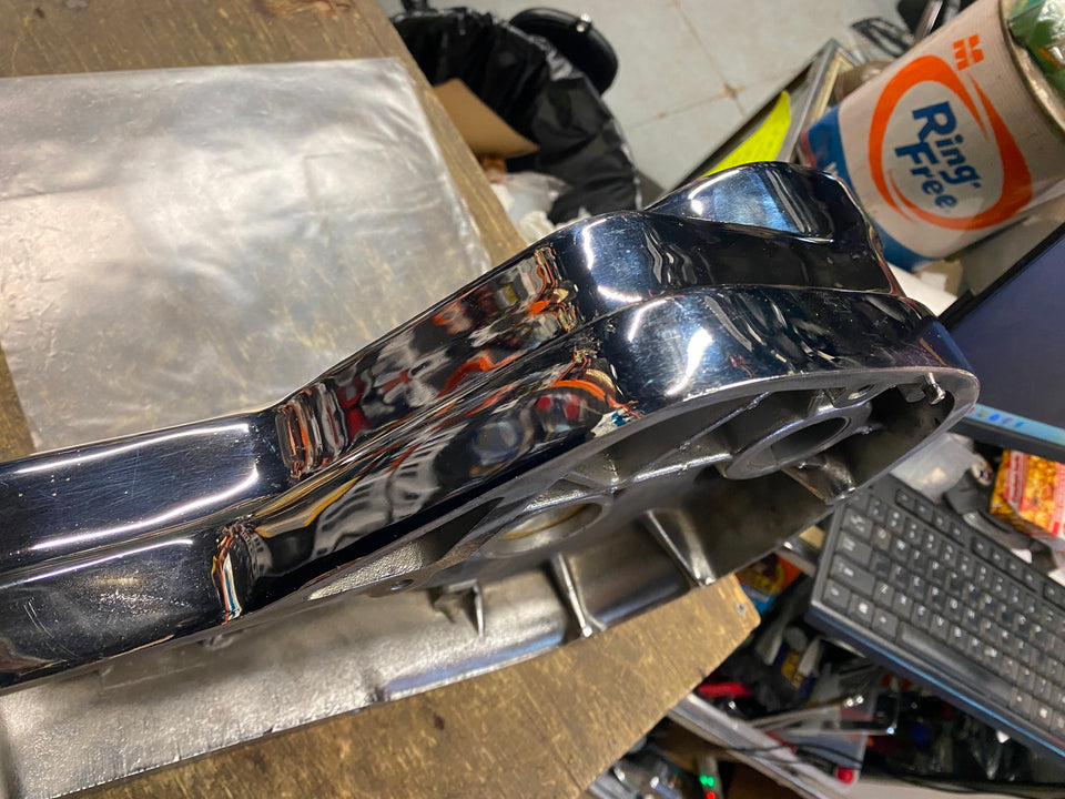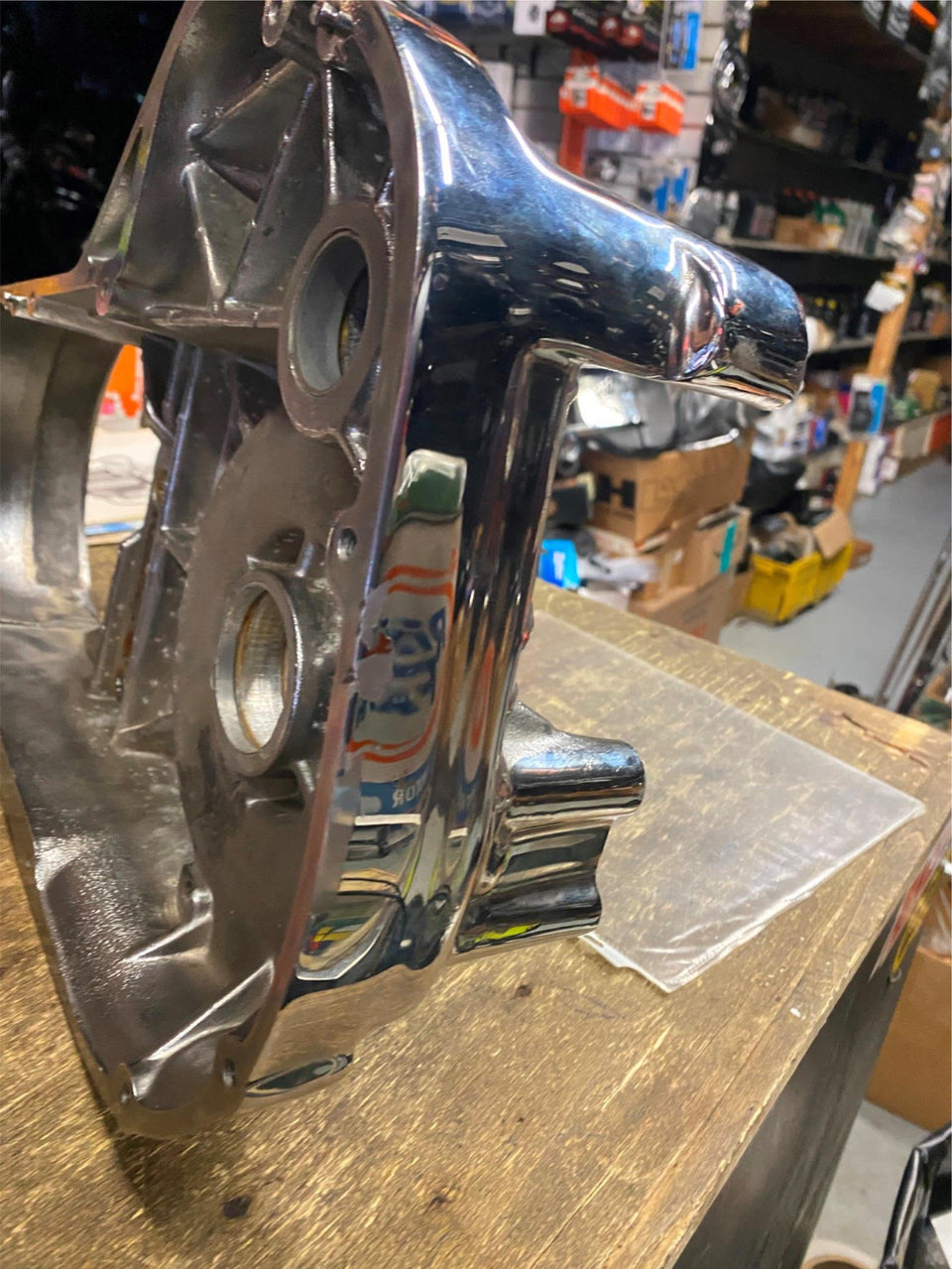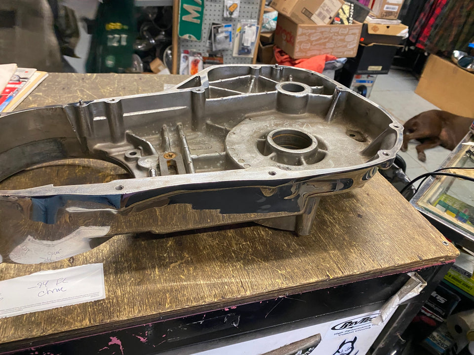 Chrome Harley OEM Inner Primary 1994-2006 Touring FLH Glide Ultra Road King Classic. Nice. Chrome part # 60677-94A. Chip on back section (pictured)