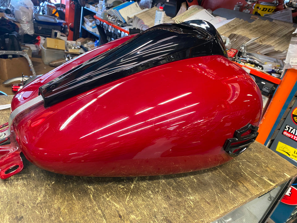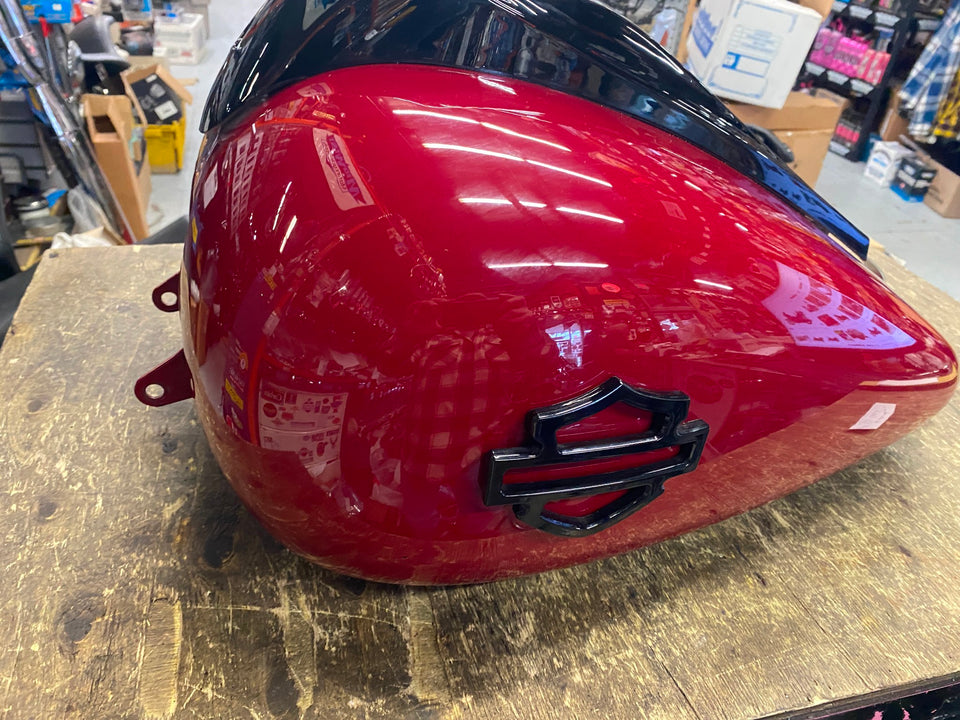 Cvo Gas Tank Red W Emblems Touring FLH Street road glide Ultra 2008^ Nice! has a few smalls, could use a buff..... overall nice tank, not sure of year or color.....if you know model & year let us know. selling tank only dash is on another listing.