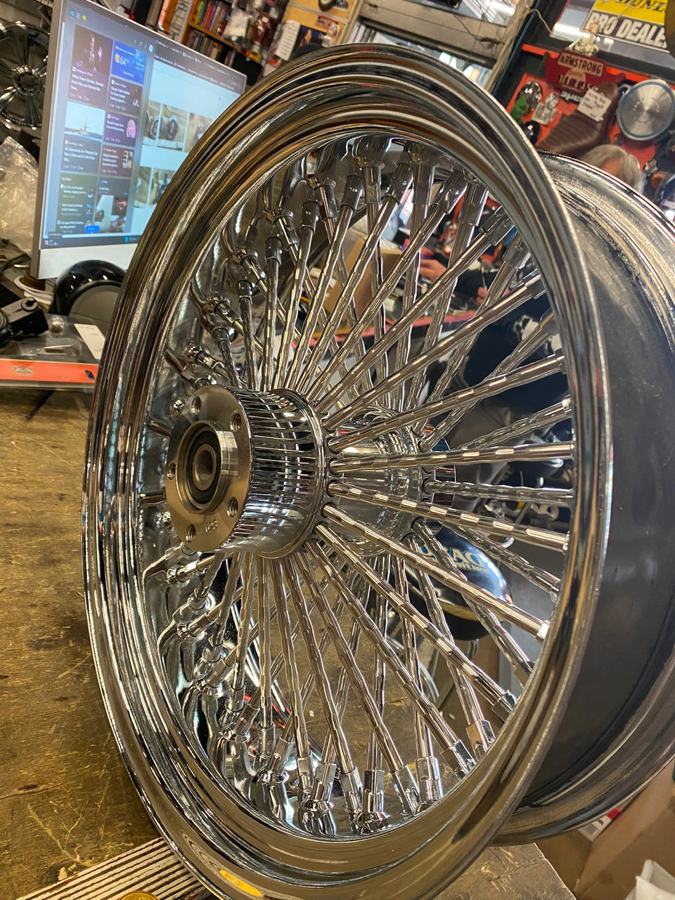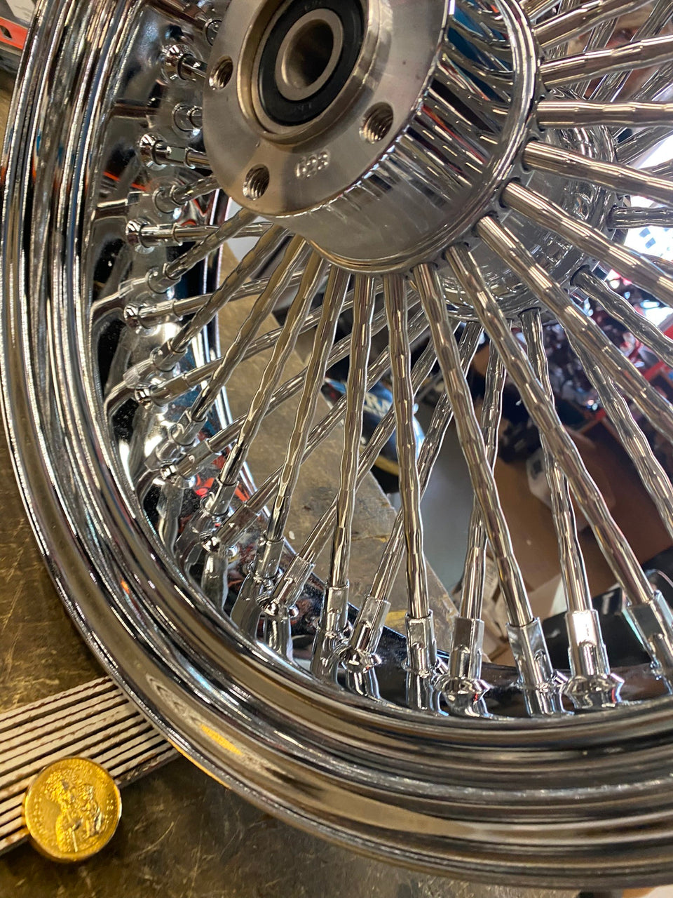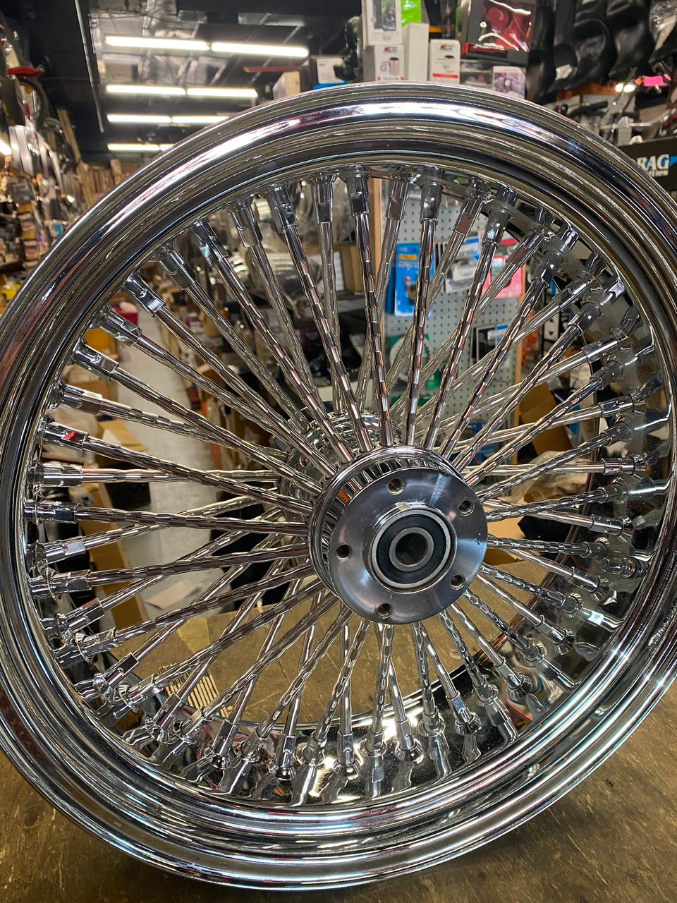 Dna Mammoth Spoke Rear Wheel 18x5.5 Diamond Spokes Chrome Softail Chopper Custom come with a 3/4 bearing.....