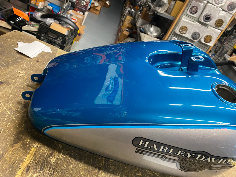 DYNA LOW RIDER GAS FUEL TANK TEAL BLUE SILVER HARLEY FXDL OEM NICE