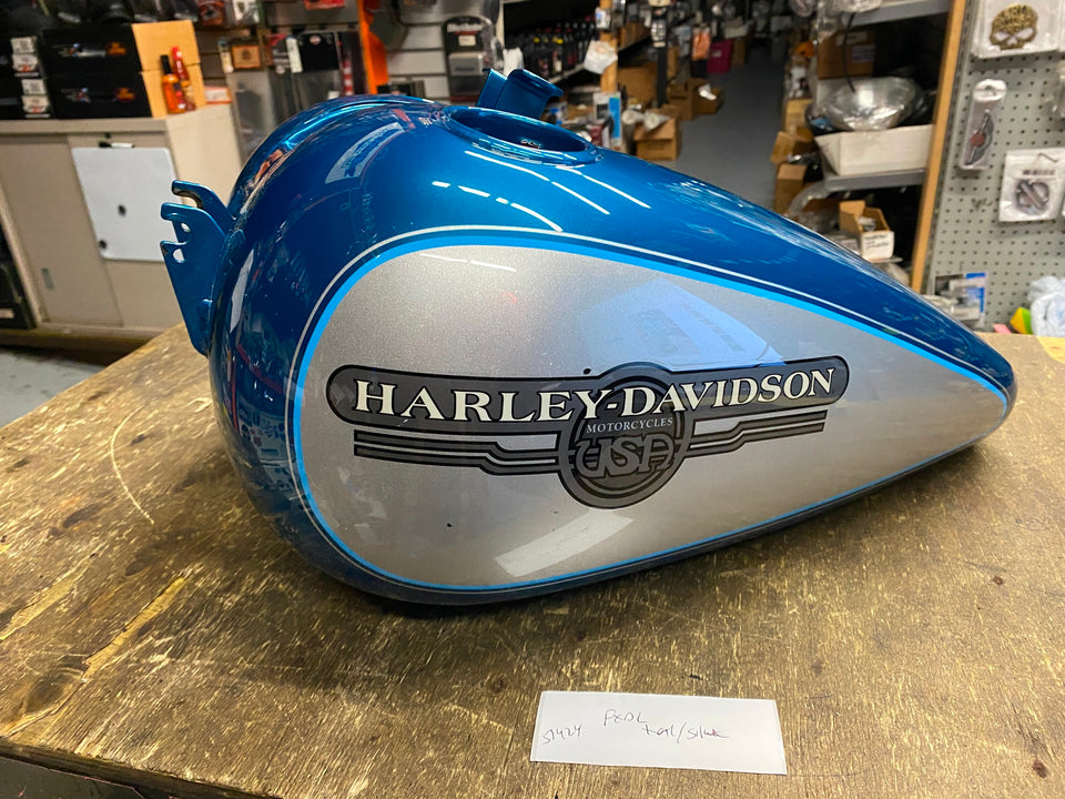 Dyna Low Rider Gas Fuel Tank Teal Blue Silver Harley FXDL OEM Nice! couple small chips... very nice tank!!!