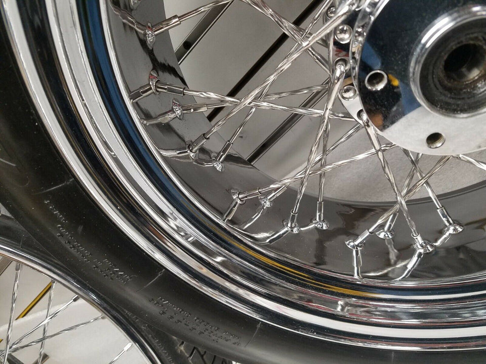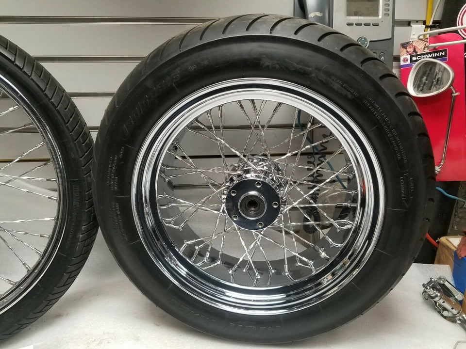 - Brand new Front Rear Set Twisted Spoke Wheels Chopper 3/4 Tires 6.5x16 21" avon Metzeler were mocked up on a chopper, brand new nice wheels with front hubcap... tires are new also, front tire is cracking on side wall....