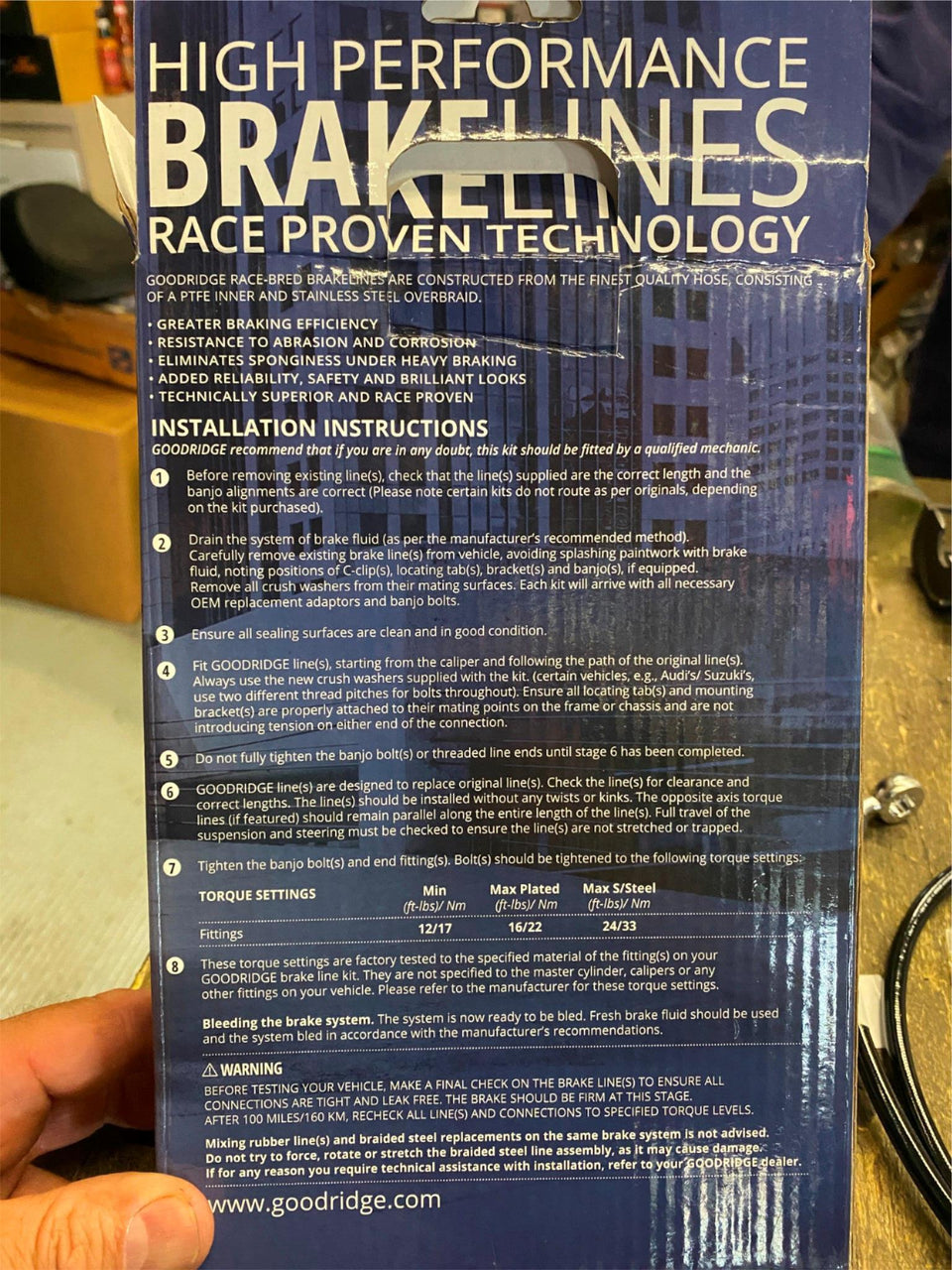 Goodridge was the first company to produce braided stainless steel brake lines for automotive use and established them as the standard in motorsport around the world. When the ultimate in braking performance is required, champions turn to Goodridge. Factory fitted brake lines are usually made of rubber. Even when new, rubber expands under pressure causing a decrease in braking performance and spongy pedal feel. Goodridge brake hoses won’t expand under pressure, delivering precise braking when you need it. Every Goodridge brake line is individually 100% pressure tested and guaranteed to be leak free. Goodridge brake lines are corrosion resistant and come with a lifetime guarantee. Every brake line kit is supplied with all fixings required to provide a perfect fit first time, every time – no need for bending banjos or putting up with universal fittings. With the largest application listing in the industry, supplying leading OEMs, motorsport teams and top aftermarket distributors, you can be confident that Goodridge’s decades of expertise shape every single brake line we make. Reduce your stopping distance, eliminate sponginess under pressure and improve your drive with a lifetime guarantee from Goodridge.