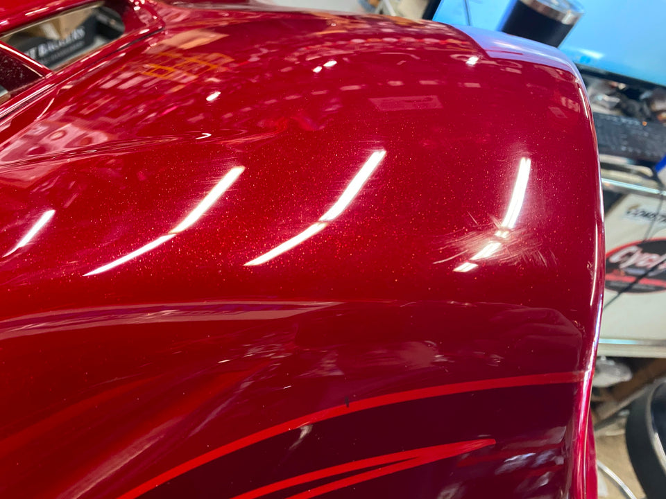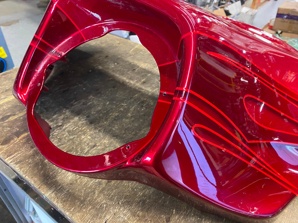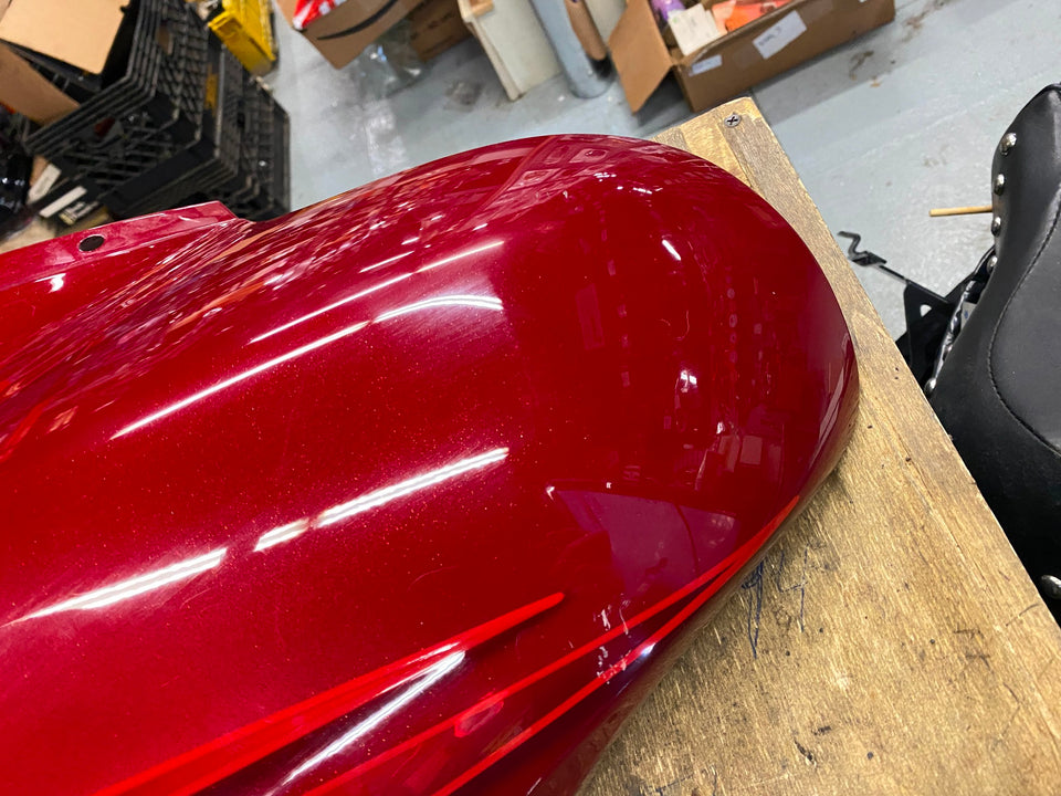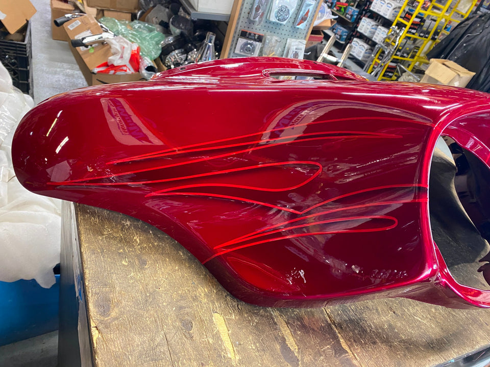 Harley CVO Landslide Candy Red Flames Outer Fairing 2016 FLHTKSE Flames Bagger was in nice shape, some knucklehead put another fairing on top of it, & it rubbed in a few places.... still nice fairing.... some may buff out, Ive recleared paint before to cover some blemishes......