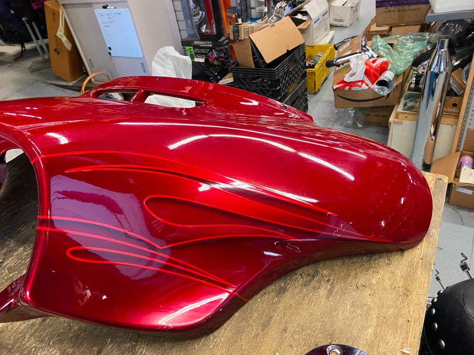 HARLEY CVO LANDSLIDE CANDY RED FLAMES OUTER FAIRING 2016 FLHTKSE FLAMES BAGGER