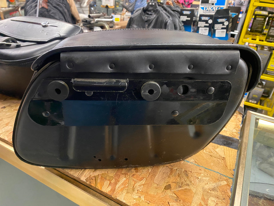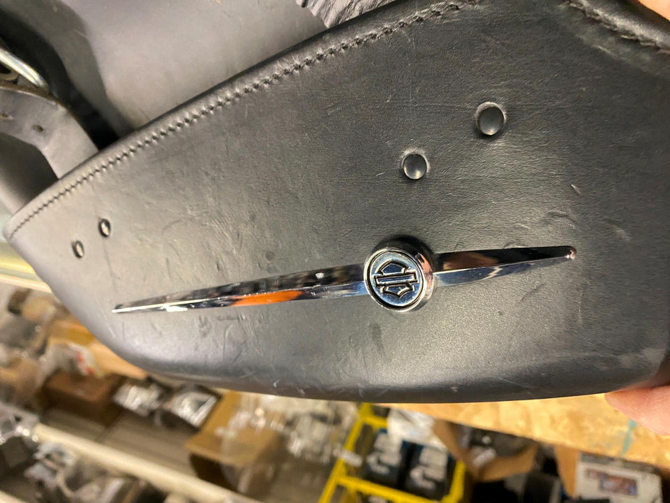 OEM HARLEY LEATHER BOLT ON SADDLEBAGS FATBOY SOFTAIL NOSTALGIA FACTORY LOGO FLST