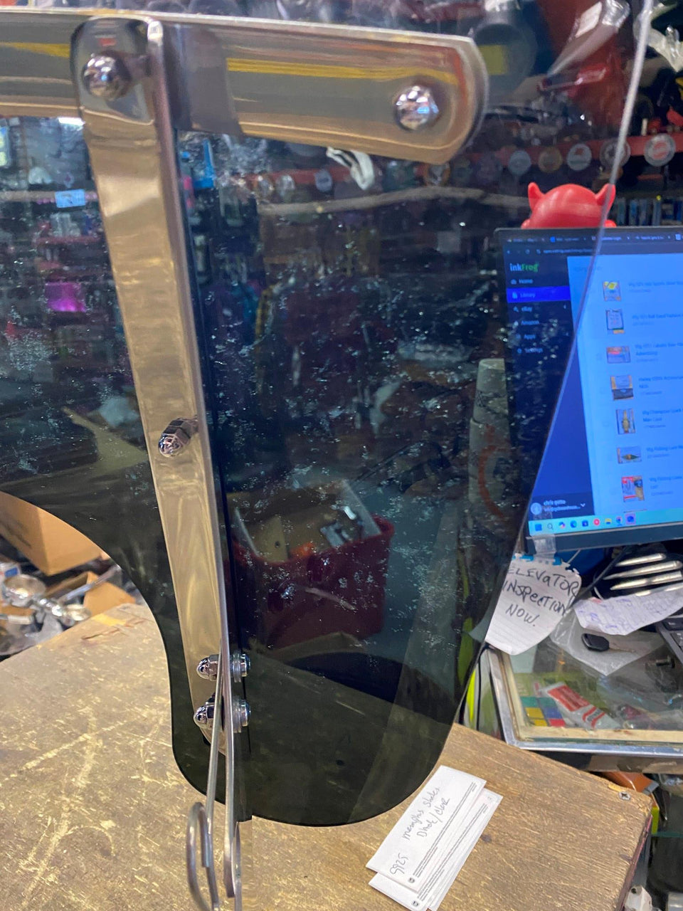 Harley Memphis Shades Road King 15" Detachable Windshield. Black Clear FLHR. Oem brackets mounts with a Memphis Shades lens. Nice shape. Can see thru some of the black on bottom. Selling as pictured.