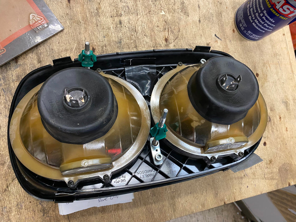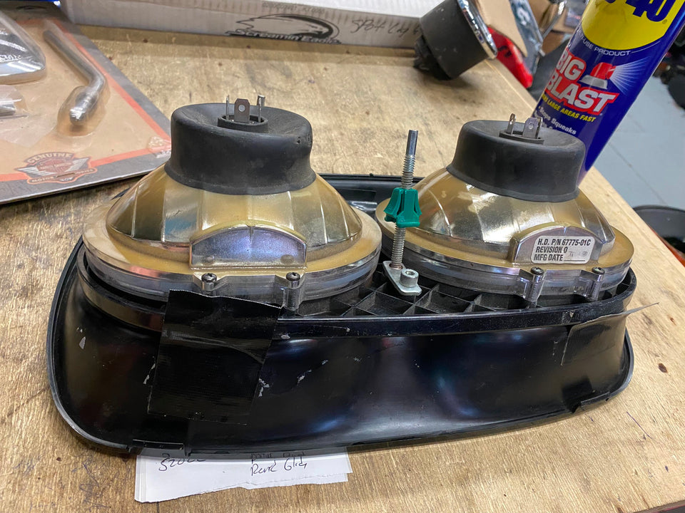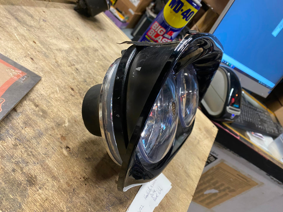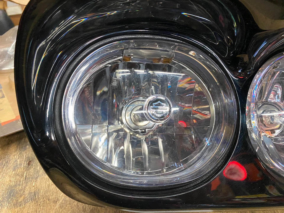 Headlight Assy Harley Road glide W visor Trim H4 Halogen FLTR 1998-2012 oem stock