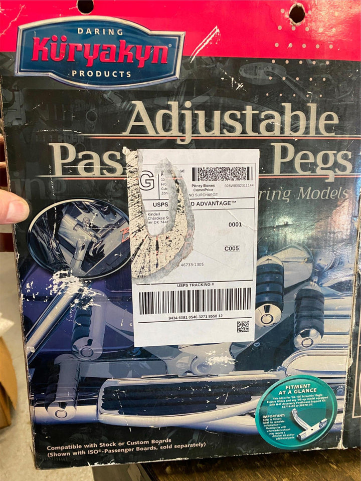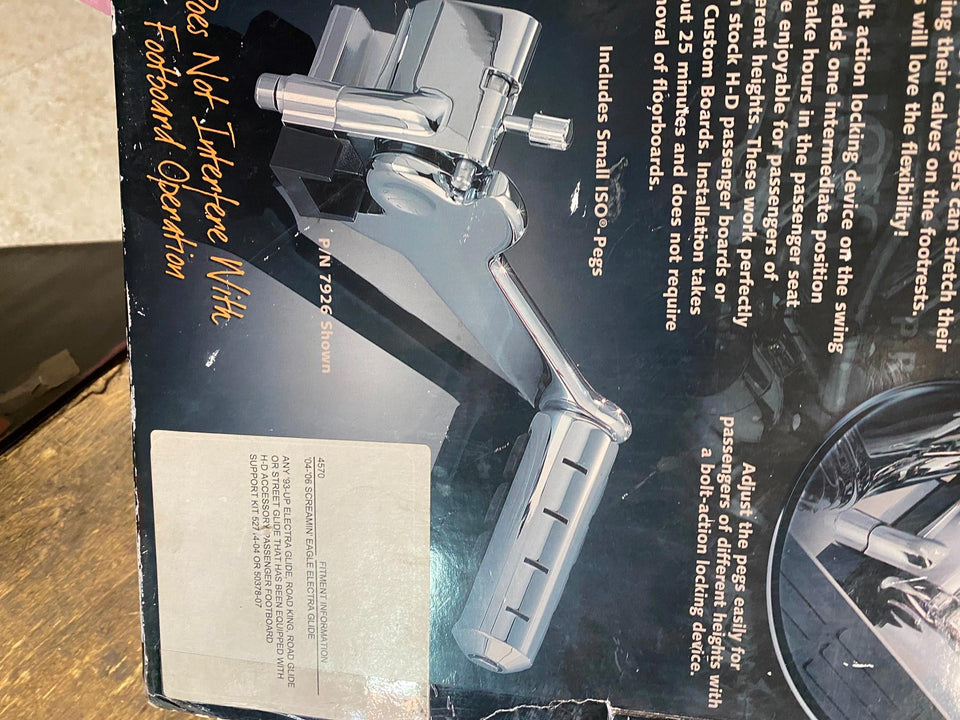 Kuryakyn Adjustable Passenger Pegs Harley Touring Ultra Classic Glide King 1993- up to 2008. Clamp on stock floorboard mount. Kuryakyn part # 4570selling as pictured.