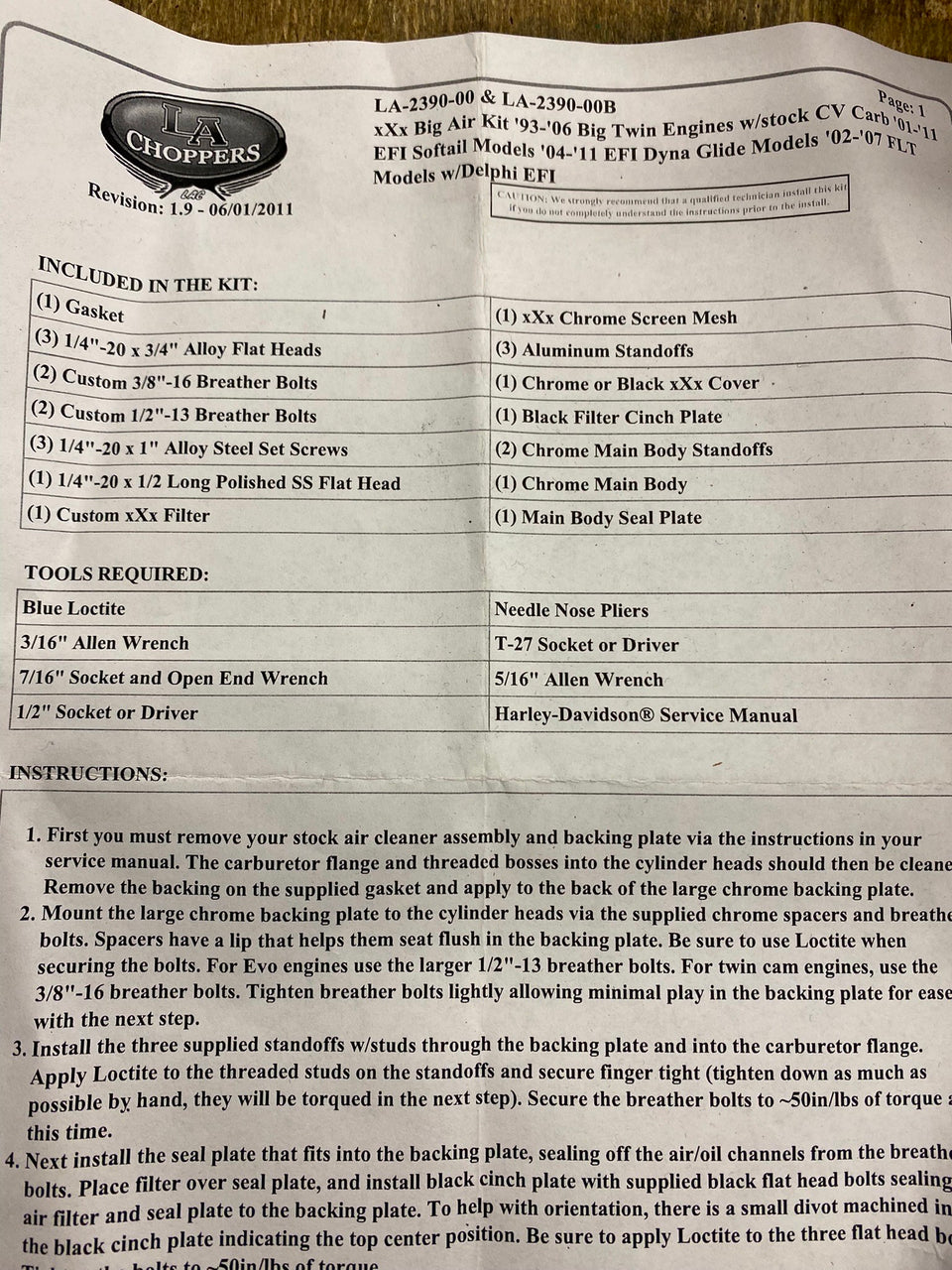 La Choppers Custom air Cleaner Harley Softail 1993-2006 Carb Hi flow Chrome XXX