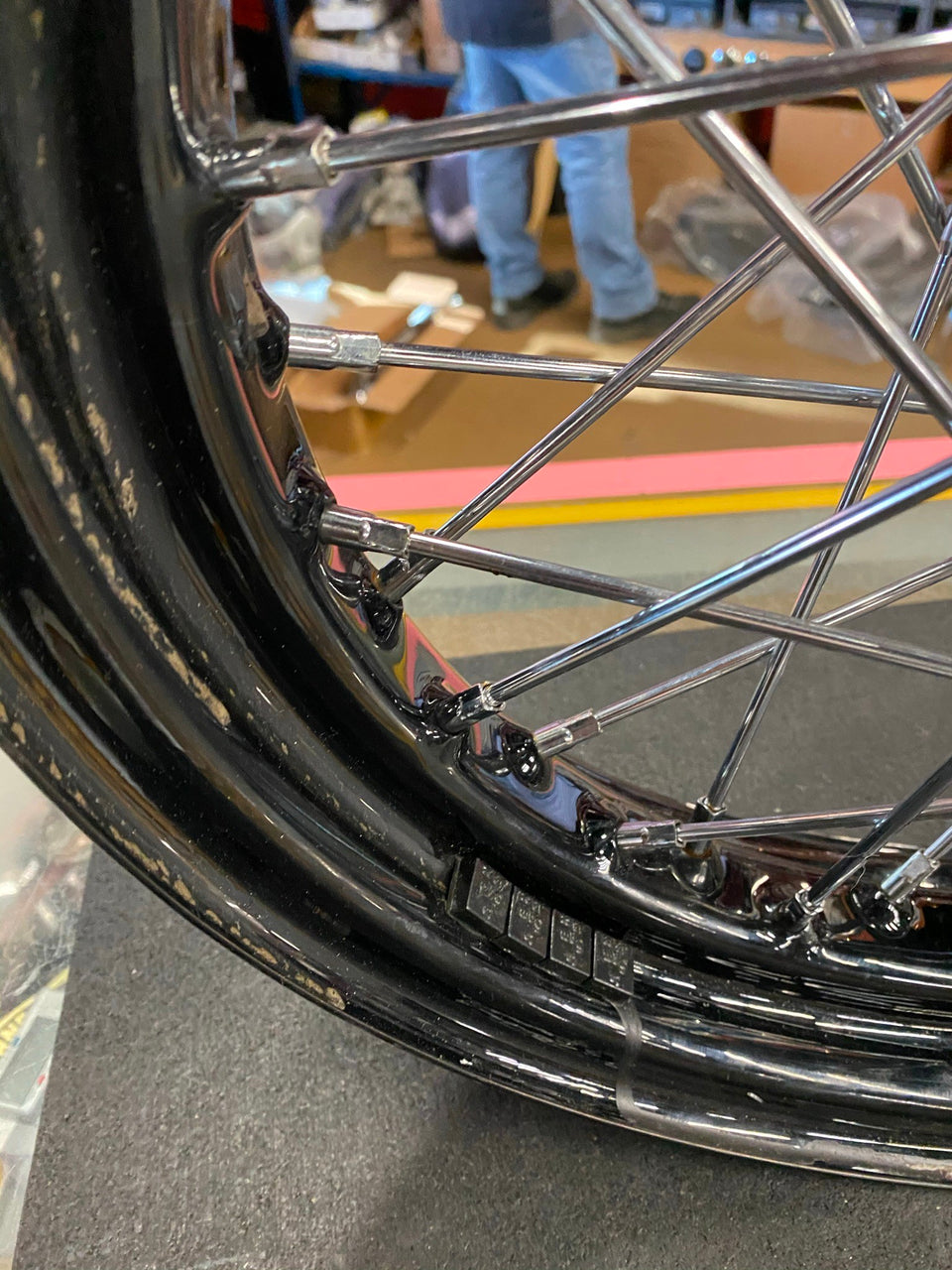 New T/o Rear Black Spoke Wheel Harley Slim FXS 3.00x16 Softail Heritage street bob? 25mm axle.... dealer took off when bike was new. not sure of all fitments stuff you see on rim is the liquid from taking the tire off...shouldve polished it off.