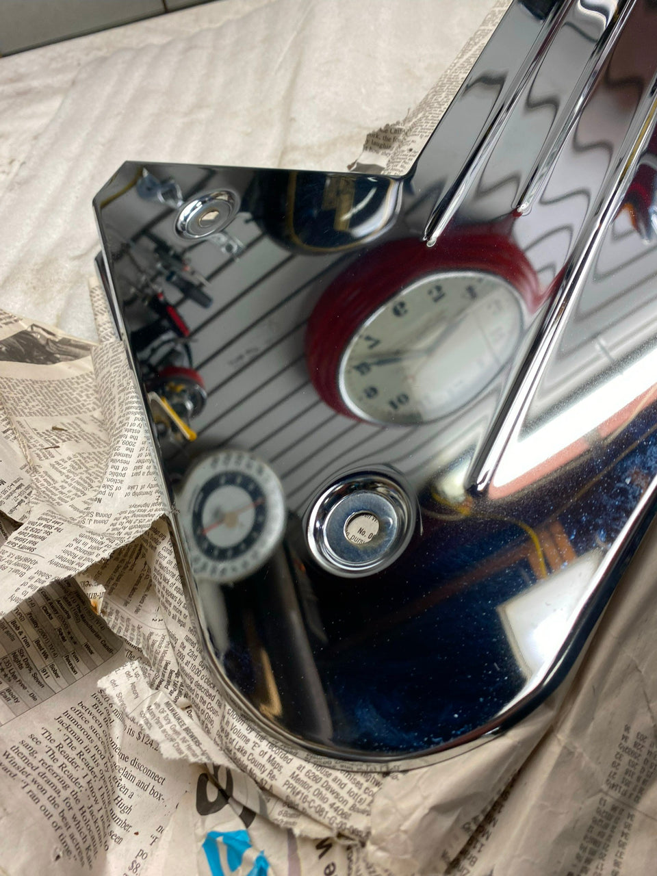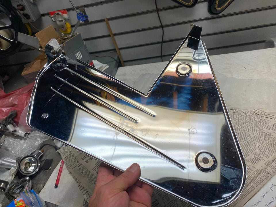 NOS CHROME SIDE COVER TRIM PANEL HARLEY SHOVELHEAD FLH BATTERY VTG USA ACCESSORY