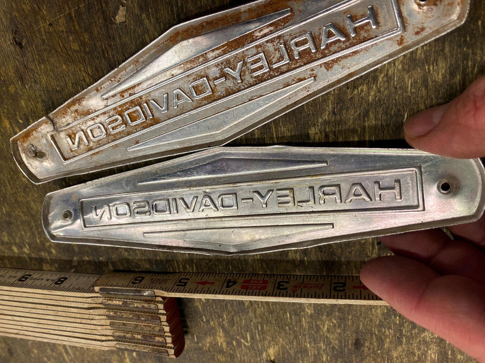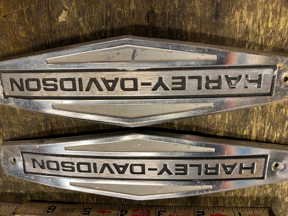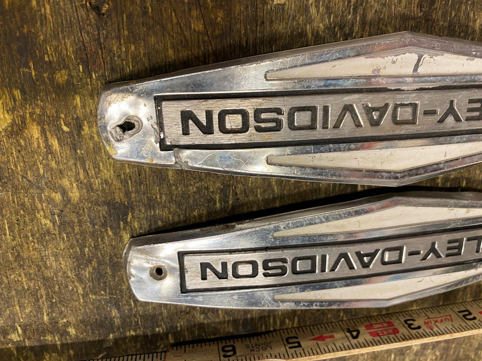 OEM Gas tank emblems Shovelhead FLH Electra Glide 61771-66 Vtg Harley Stock pr! took off a 1969 flh factory harley! some wear & tear