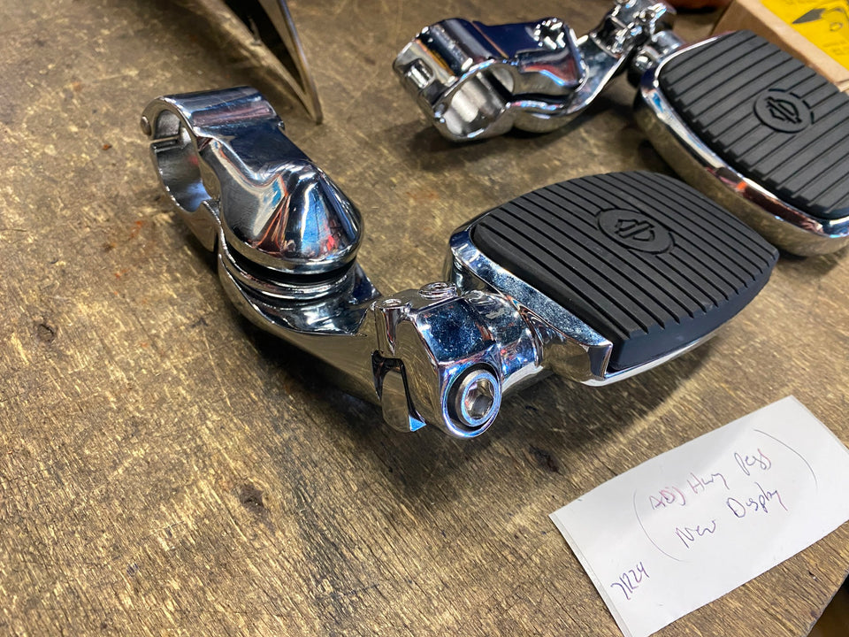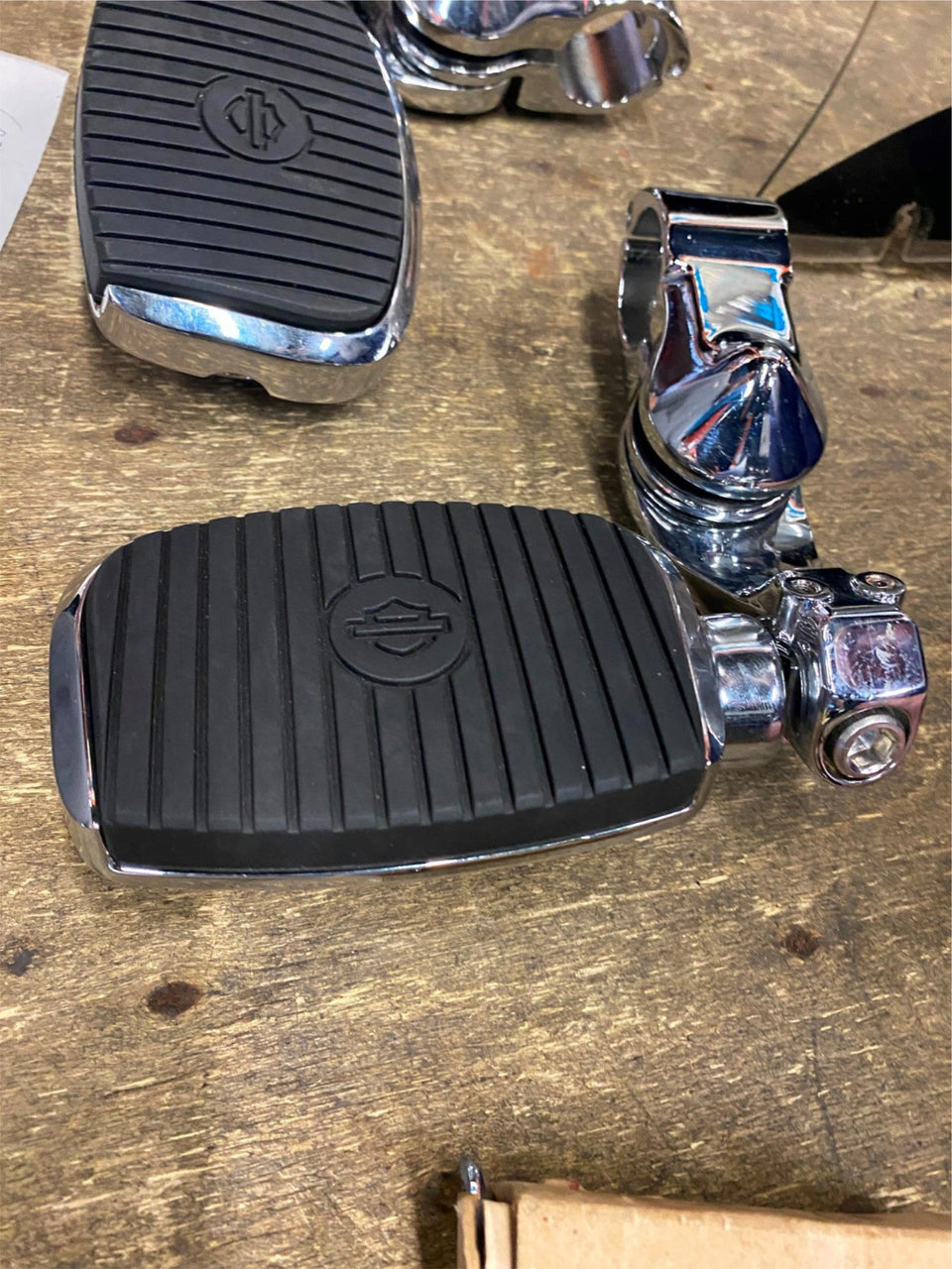 OEM Harley Adjustable Highway Pegs Mounts Mini Footboards Touring Heritage Glide part #'s 50500109 & 50830-07A Both are new factory harley! for std 1 1/4 barselling as pictured.