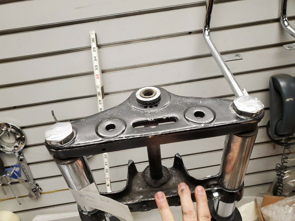 OLD SKOOL WIDE GLIDE FORKS . HARLEY FLH SHOVELHEAD PANHEAD CHOPPER . 41MM BRAKE . OEM . EARLY PANHEAD TREES, BOTTOM ONE IS SHAVED... LITTLE EXTENDED, EVEN COMES WITH THE FACTORY BRAKE CALIPER & AXLE NICE SET OF ORIGINAL PANHEAD TRIPLE TREES FOR HYDRAGLIDE DUO GLIDE 1949-1959.... CAME WITH A PANHEAD CHOPPER .