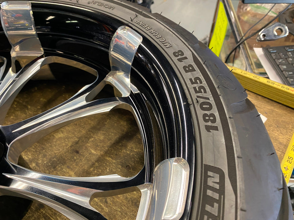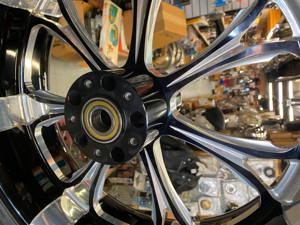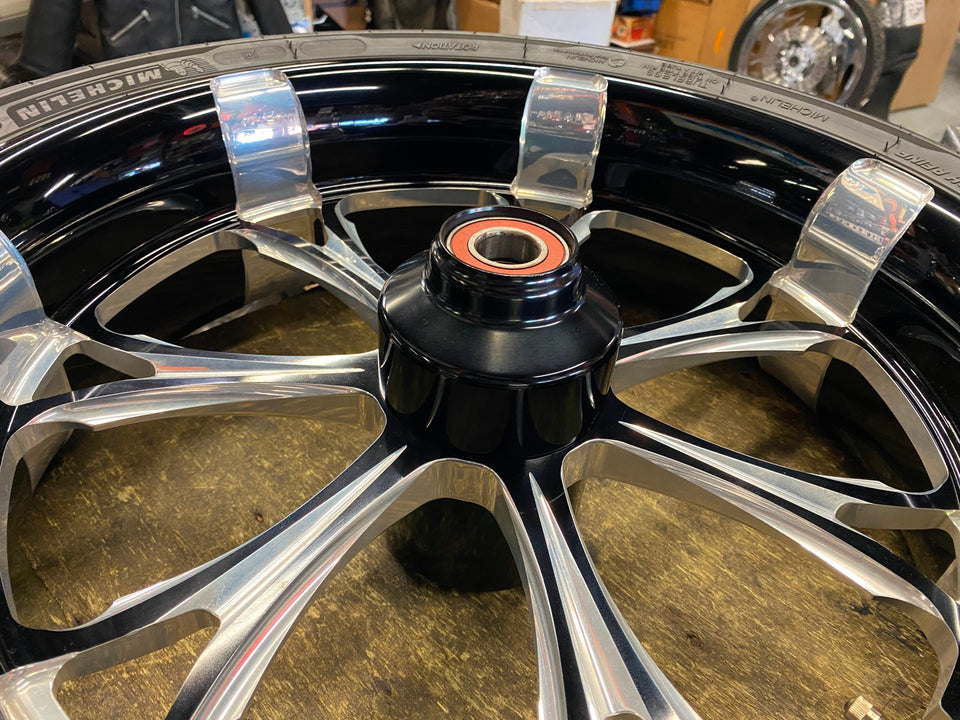 - Performance Machine Paramount Wheel 18x5.5 Black Harley Front Touring FLH Tire! mocked up on a touring bike, believe size was 18x5.5 has a new tire on it also, was putting on the front single disc. was 2500 new! .... or you can get a different hub from pm & change back into a rear wheel.......
