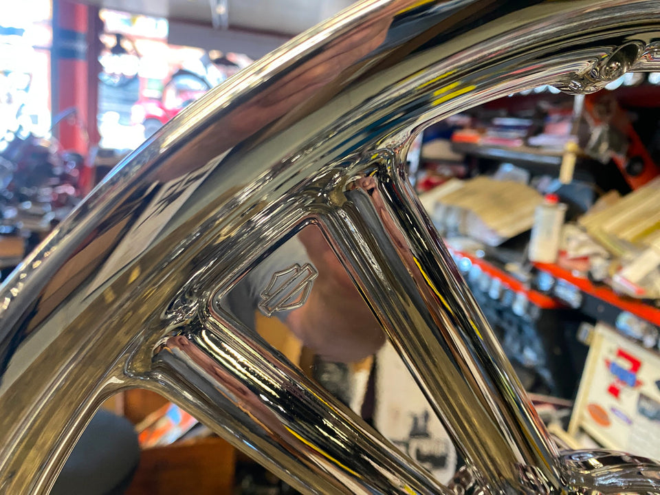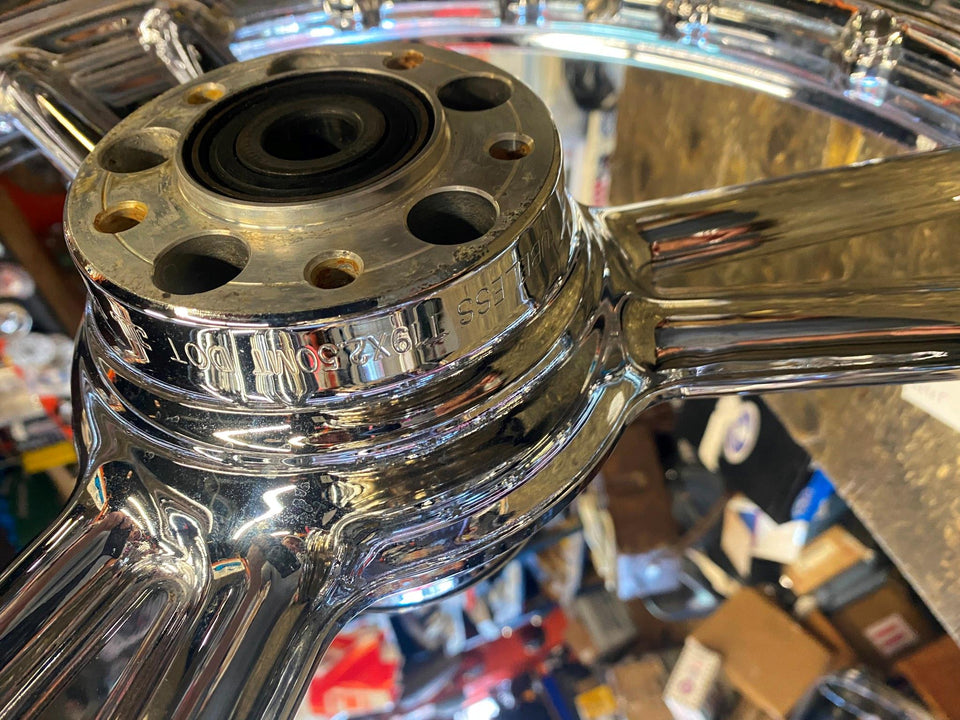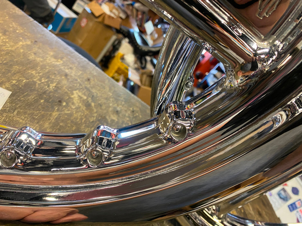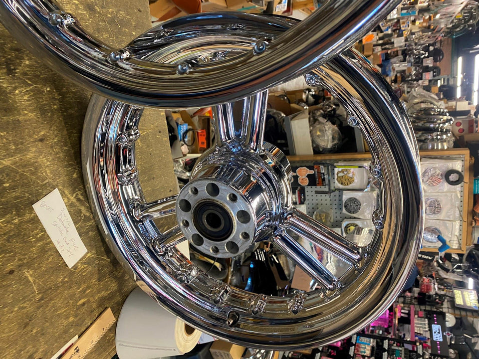 PR DETONATOR HARLEY CUSTOM 3 SPOKE MAG WHEELS CHROME DYNA SPORTSTER & CHOPPER 16X3 21X2.5