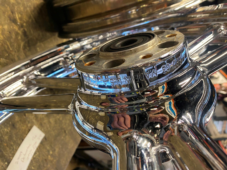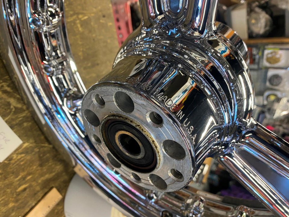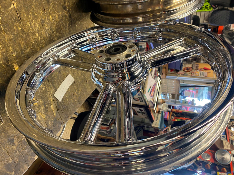Pr Detonator Harley Custom 3 spoke Mag wheels Chrome Dyna Sportster & CHOPPER16x3 21x2.5! factory mags! Very nice! 3/4 sealed bearings, were an accessory wheel. Great Look! Really make the bike!
