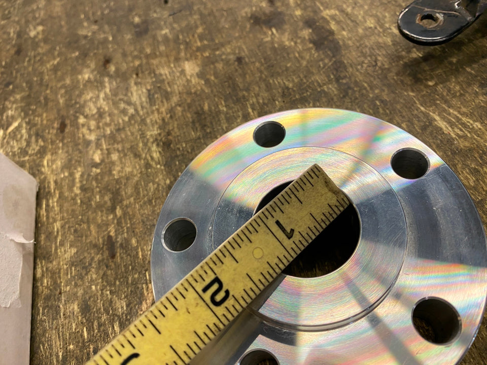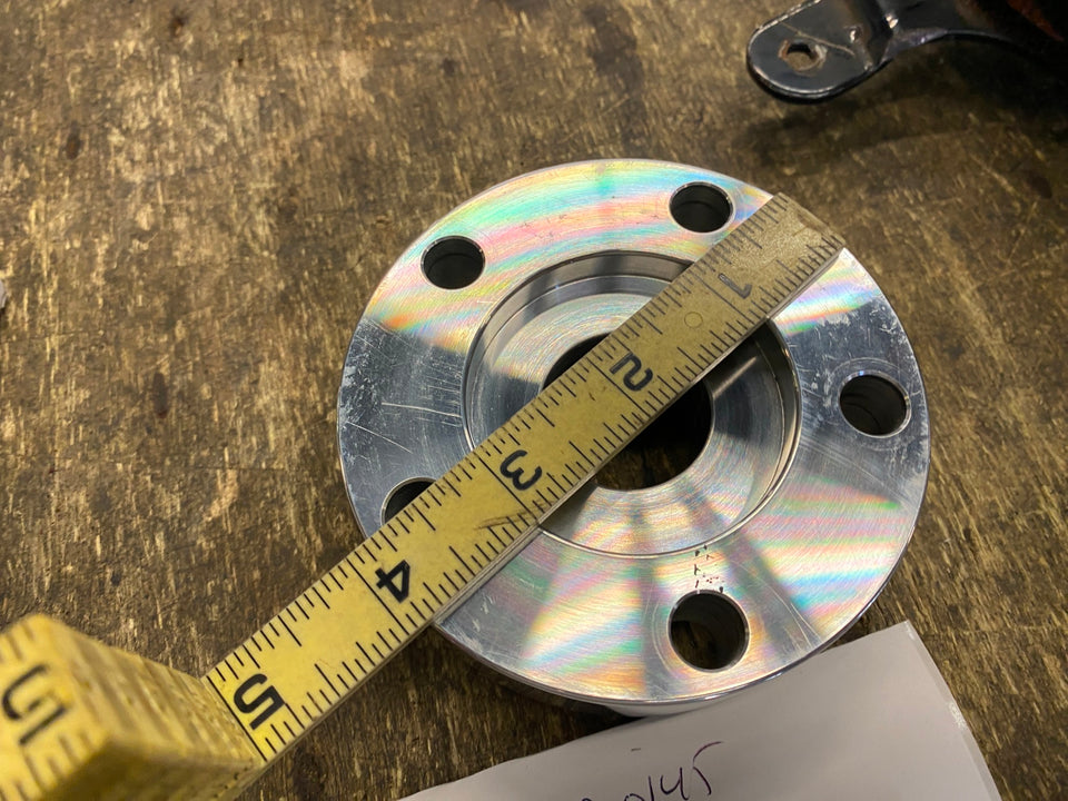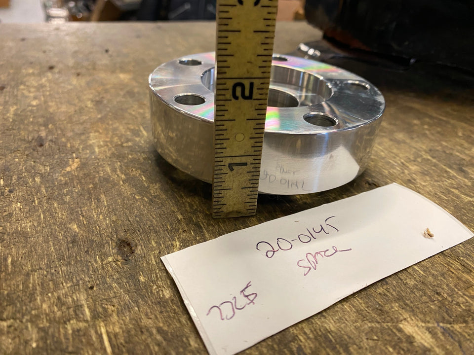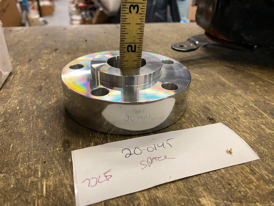 Rear Belt Pulley Brake Rotor Disc Spacer 1" Wheel Adapter Harley Softail FXR Dyna etc Alloy 1" thick rear pulley rotor spacer has 5 holes and 7/16" bolt holes.This spacer is ideal to get belt pulleys and chain sprockets in line. Spacer can be machined down to the next size under without having to worry about the spigot alignment when you machine the face of the spacer down to desired thickness. Spacers are drilled for use with 7/16" bolts and designed to be used with 2000-UP type wheel hubs. 2.25 inner diameter