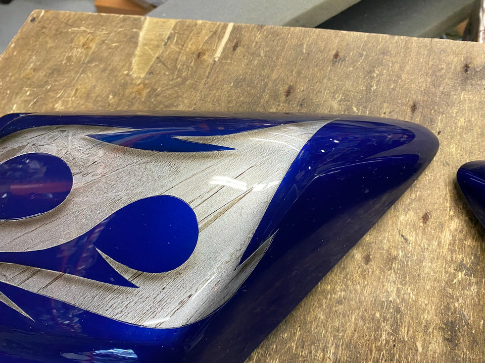 Right Flame Blue Side Cover CVO Custom Harley Touring FLH Bagger Road King Glide were for a cvo road king approx 2013 cant find the paint job on anything.. if you know it let us know.. have both lowers, side covers & one lid.... other side on another listing.