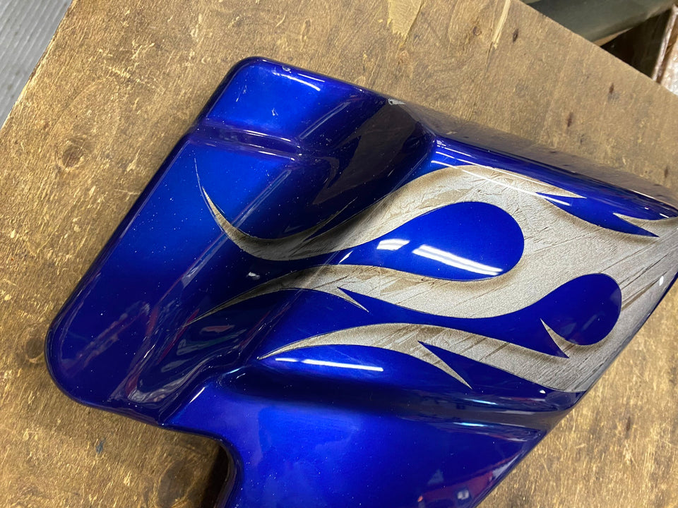 RIGHT FLAME BLUE SIDE COVER CVO CUSTOM HARLEY TOURING FLH BAGGER ROAD KING GLIDE