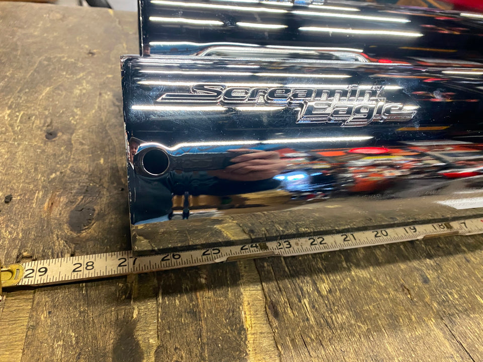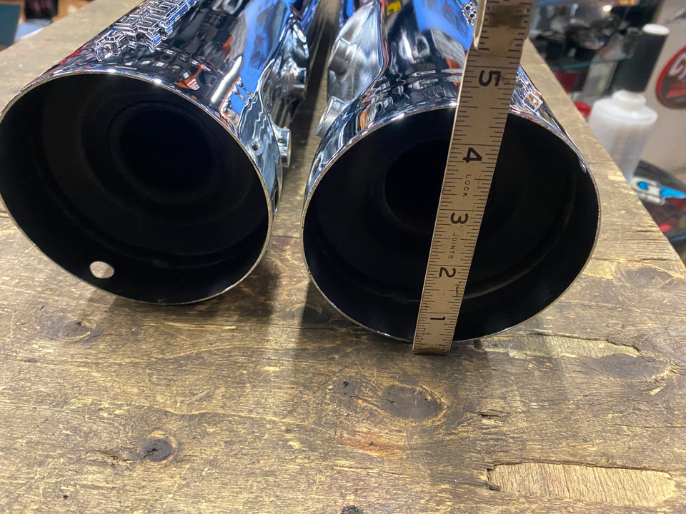 Screamin Eagle Street Cannon Slip-On Mufflers Harley Touring FLH M8 2017^ Chrome customer bought them for his bike, said he didnt know they didnt come with tips, took them on trade for some other mufflers no box! Pretty sure Harley part # 64900552A