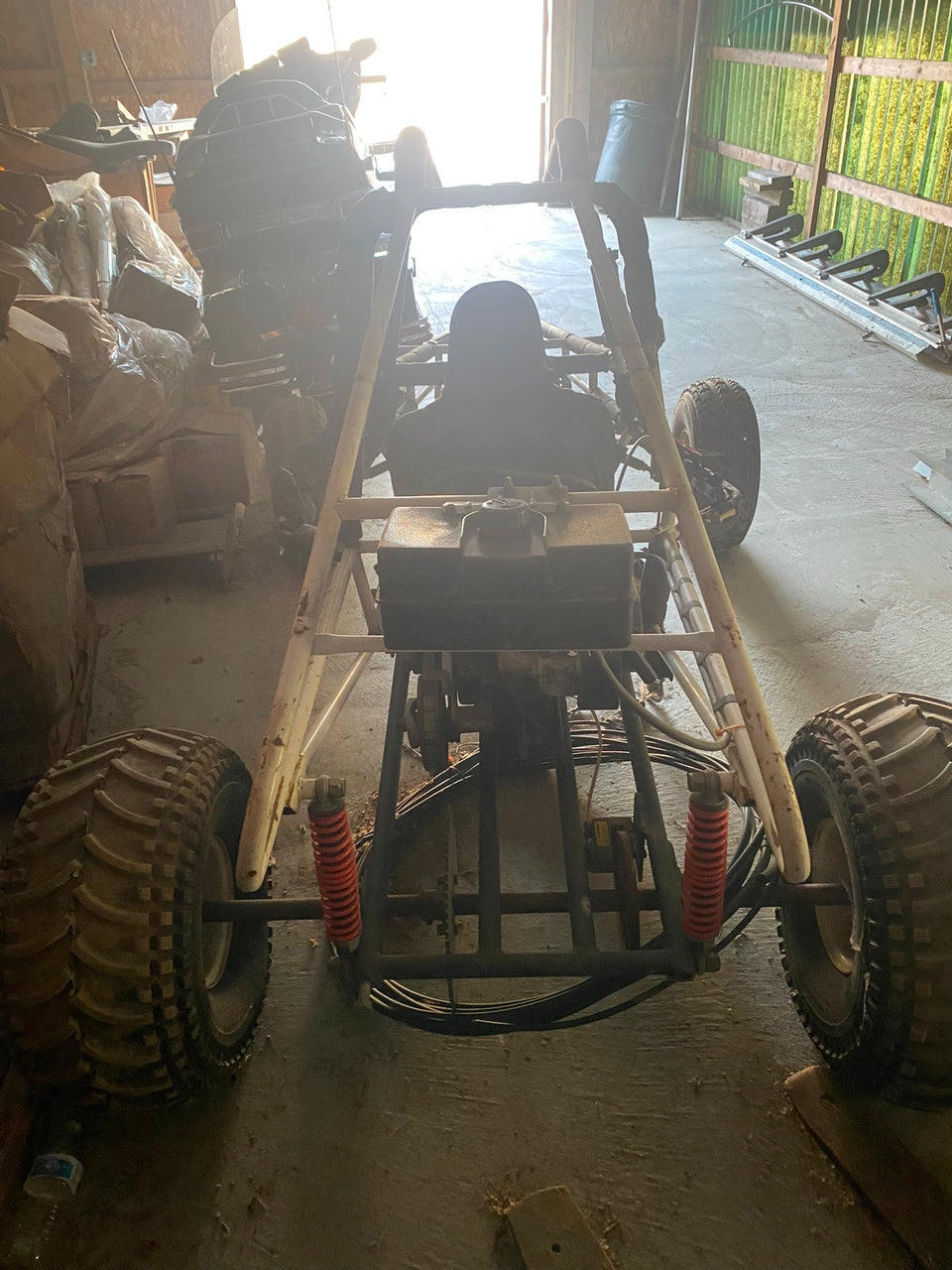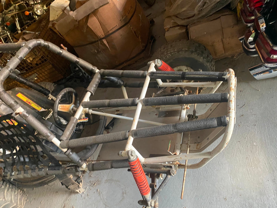 Vtg CMS Go Kart 1970's Husky UTV Honda Pilot odyssey Early Prototype Mini Bike Co... told this is one of 50 made in the 70's came with 2 husky chain saw motors originally.. kinda a prototype of the honda odyssey or pilot....full roll cage, way way ahead of its time...took chain off to move it few years ago.. one of the tie rods broke... was updated with a newer motor & tires....never seen another one!! if you have any info on it please let us know!!! can ship but would have to get some quotes o it....put in ad pickup only but we will ship