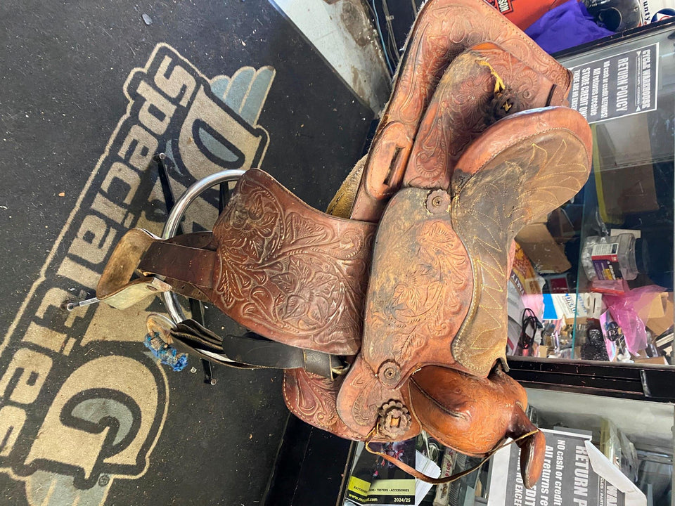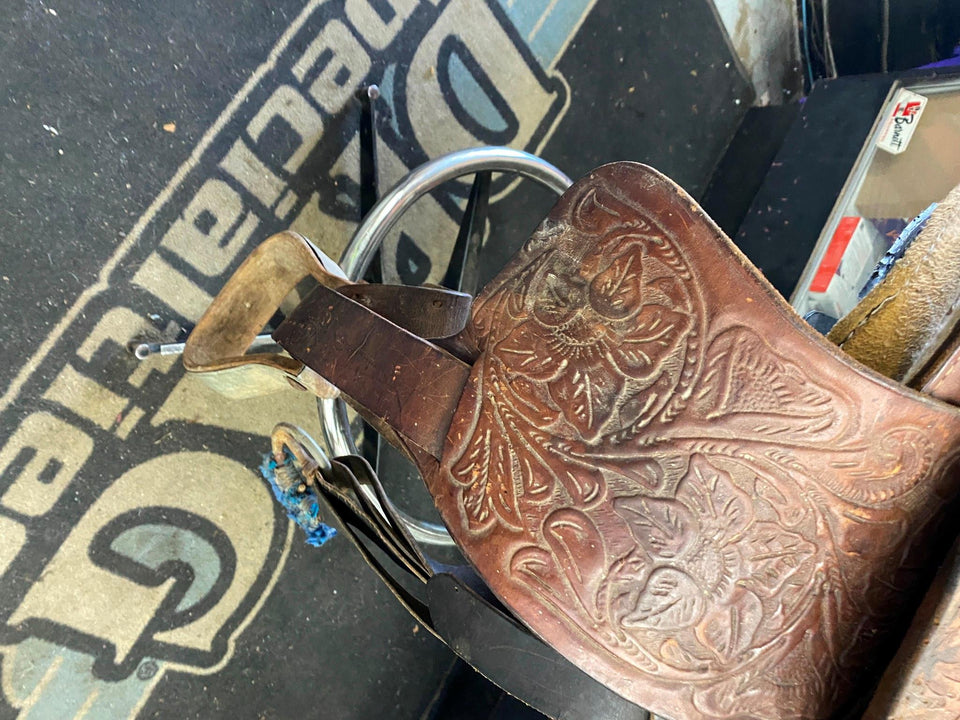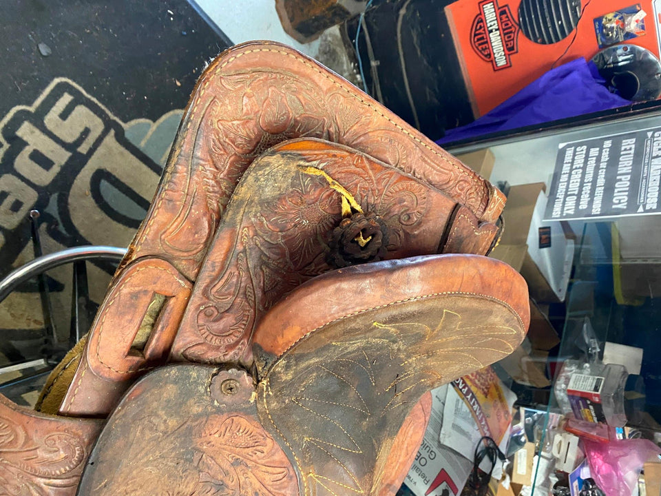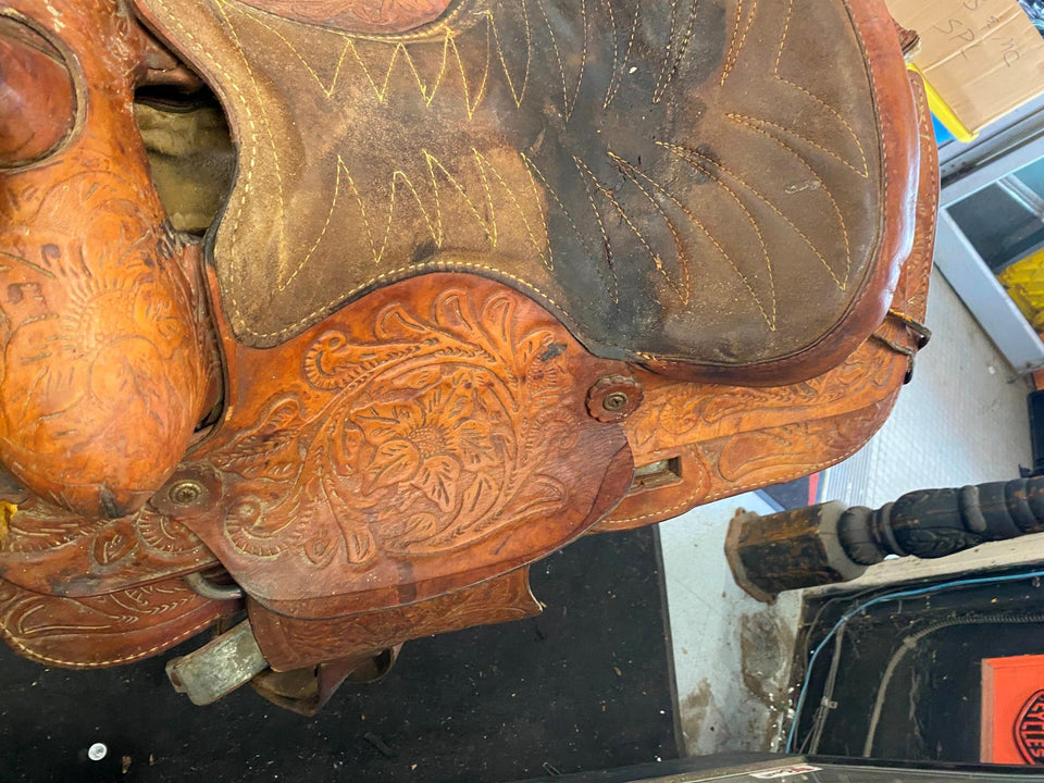 VTG HAND TOOLED LEATHER HORSE BACK SADDLE WESTERN COWBOY RANCHER!