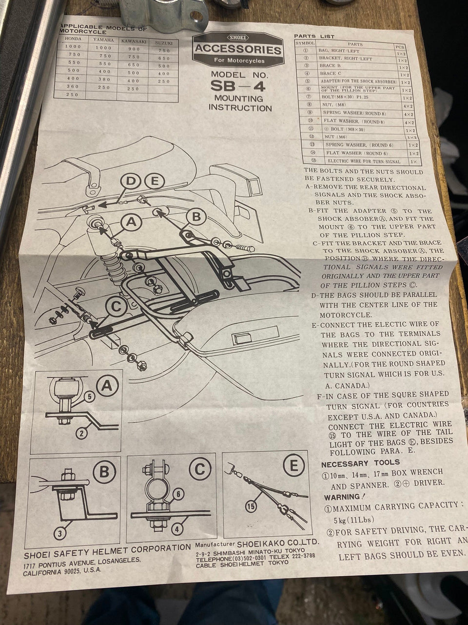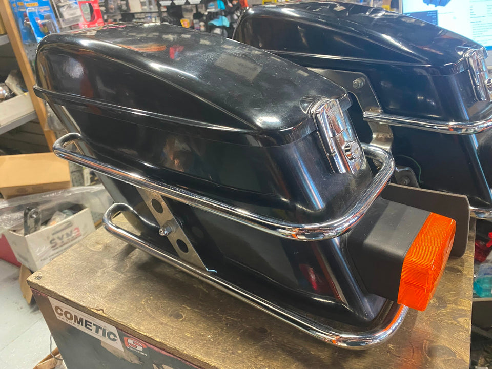 VTG NOS SHOEI SADDLEBAGS HARD BAGS CHROME RAILS MOTORCYCLE CB KZ XS HONDA HARLEY