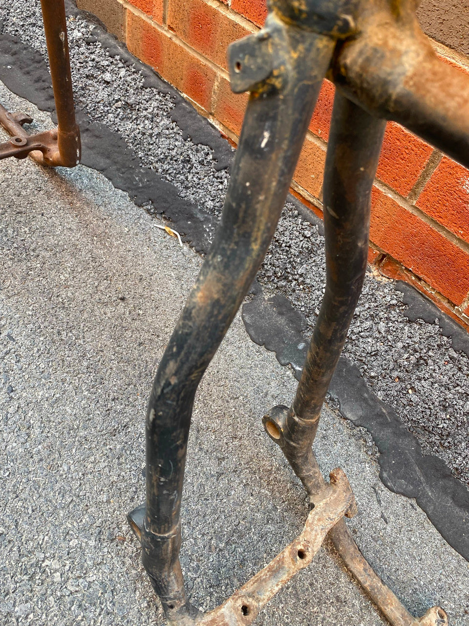 VTG Wishbone Frame Harley Panhead Flathead UL OEM Orig Factory Stock 1948-1954 nice frame pretty much stock, downtubes are still good, had rear stand mounts put back on....left the patina.....