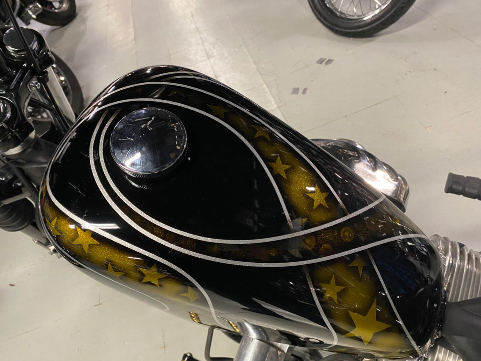 1984 Harley Davidson custom Shovelhead chopper/bobber. One of a kind, with a clean Pa title! Custom paint with gold metallic skull and star inlay & silver metallic striping. 9k original miles. Come by the shop at Cycle Warehouse, Butler Pa or call for more details.