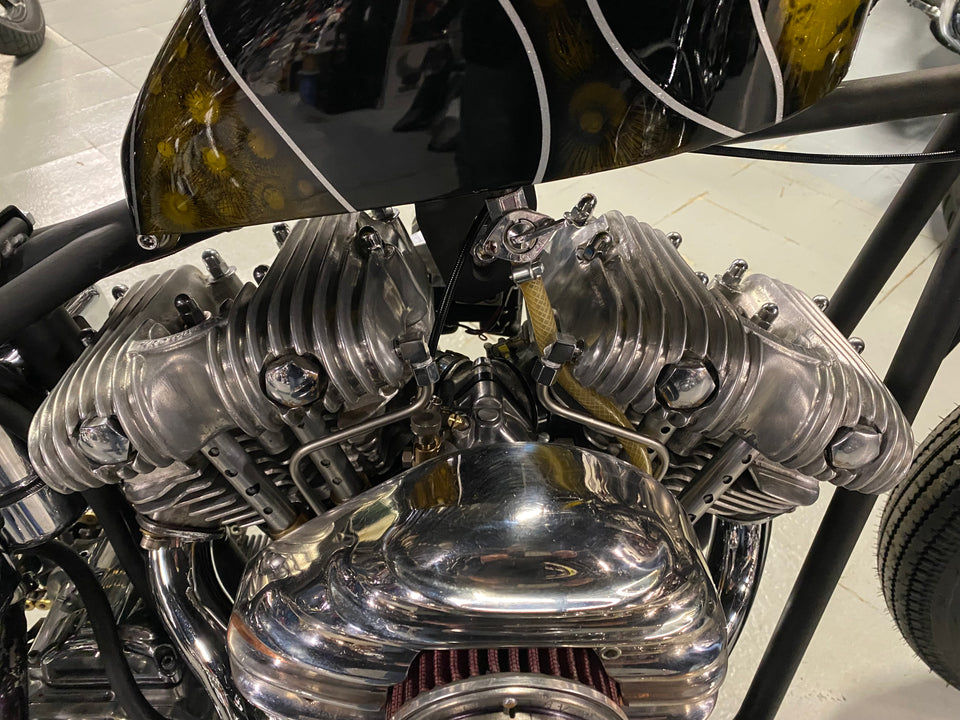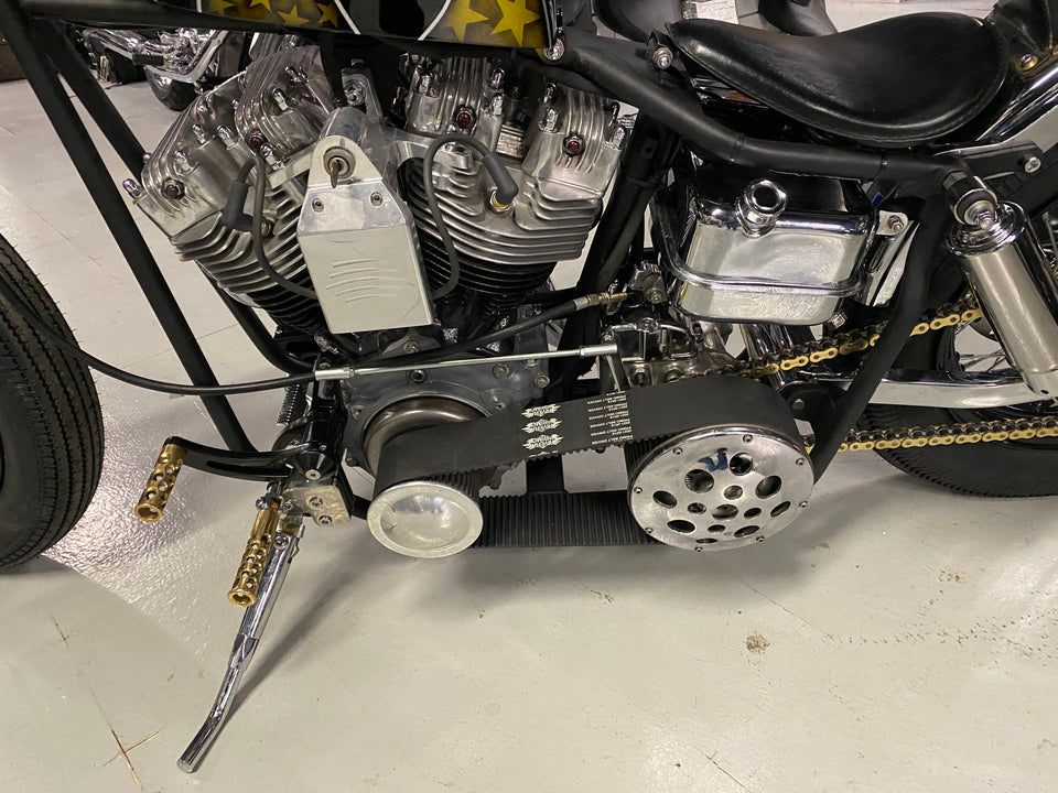 Throwback Custom Rocker Boxes- (#198 Out Of 200 Sets Made)Custom Santee FramePorted Polished HeadsKick Start Only5 Speed Standard Bore3" Open Belt Primary Billet Forward ControlsLAF PipesGMA Rear CaliperLate Model 39mm Forks w/12" T-BarsBlack Rims/Chrome Spoke Wheels